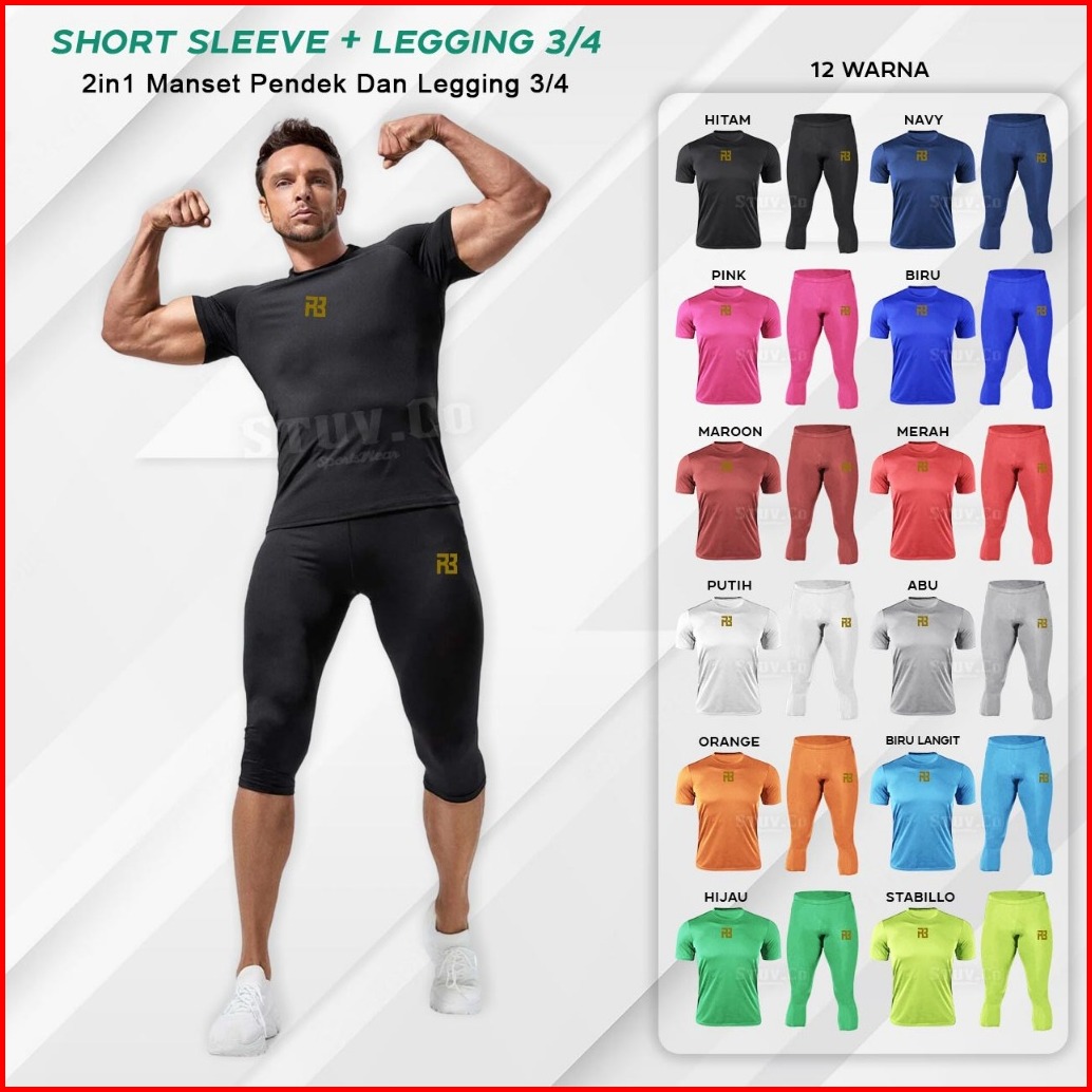 Rumah Baselayer Paket 2in1 Stelan Manset Lengan Pendek Legging 3 4 Olahraga Pria Wanita Outdoor
