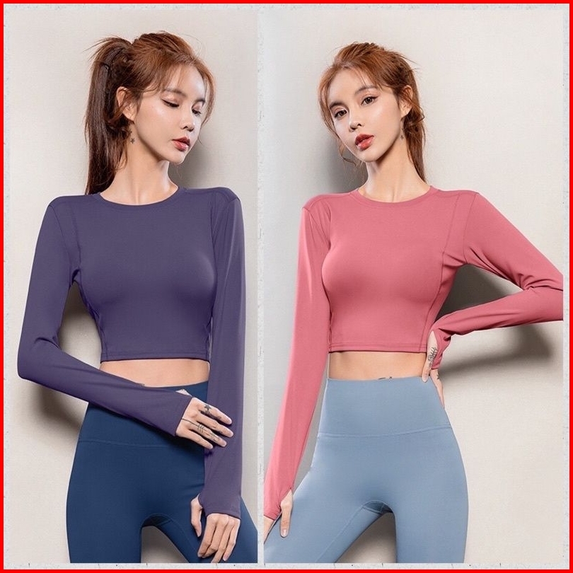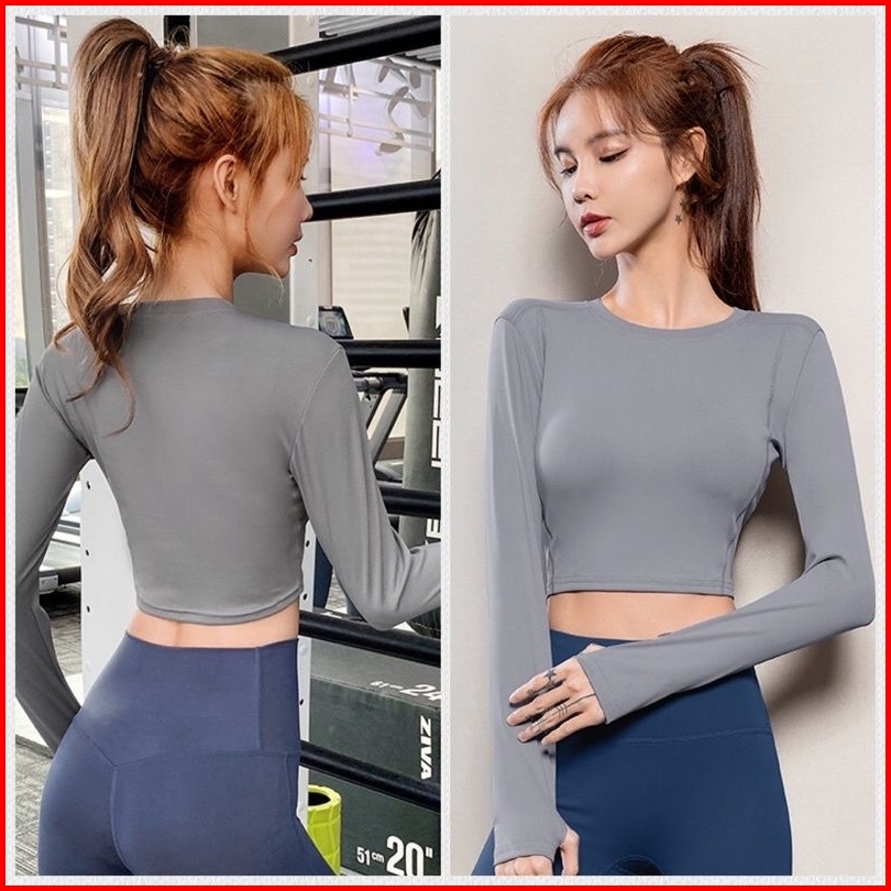 Baju Olahraga Wanita Lengan Panjang Atasan Aerobik Wanita Mtcx