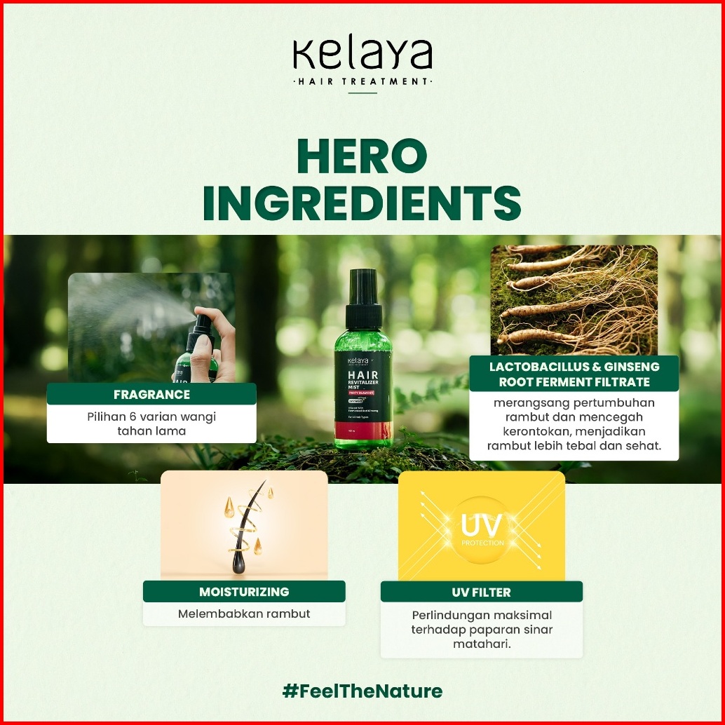 Kelaya Hair Revitalizer Mist 100ml Parfum Rambut Pewangi Heat Protection Anti Uv Tahan 24 Jam