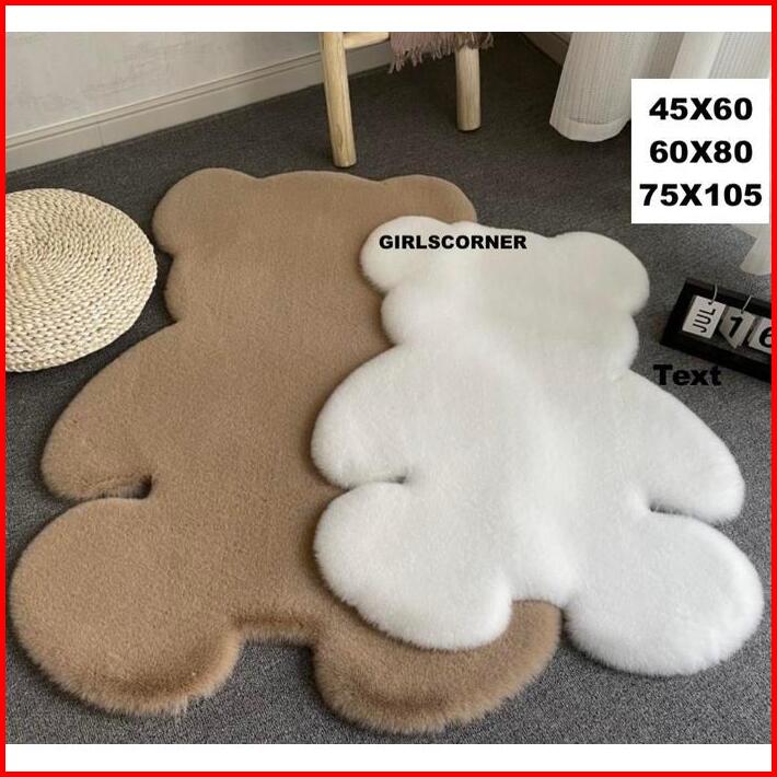 Promo -karpet Bulat Mewah Bear Karpet Bulu Kamar Tidur Ruang Tamu Alas Tidak Licin Bludru Dekorasi - Pink S 45x60