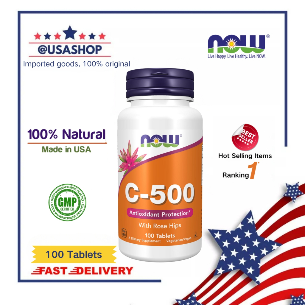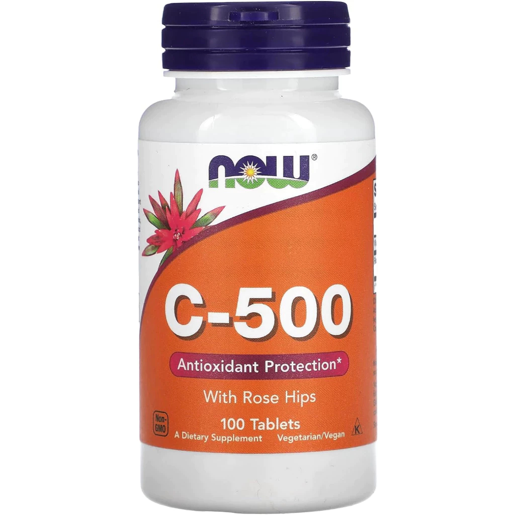 NOW Foods Vitamin C-500 Vit C500 Suplemens v-c 500 Antioxidant with rose hips 100 tablets Original