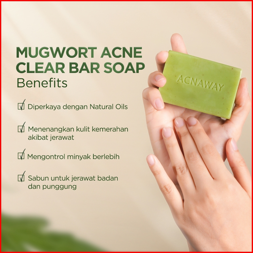 Acnaway Mugwort Acne Clear Bar Soap - Sabun Organik Natural Acne Soap Untuk Jerawat Badan Tanpa Paraben Alkohol With Sul