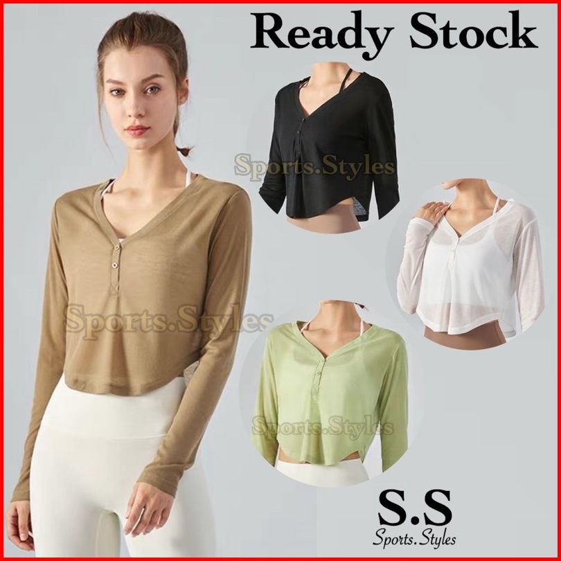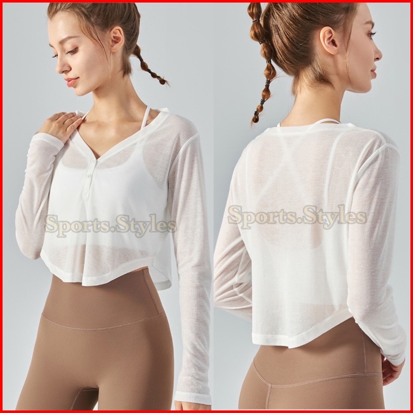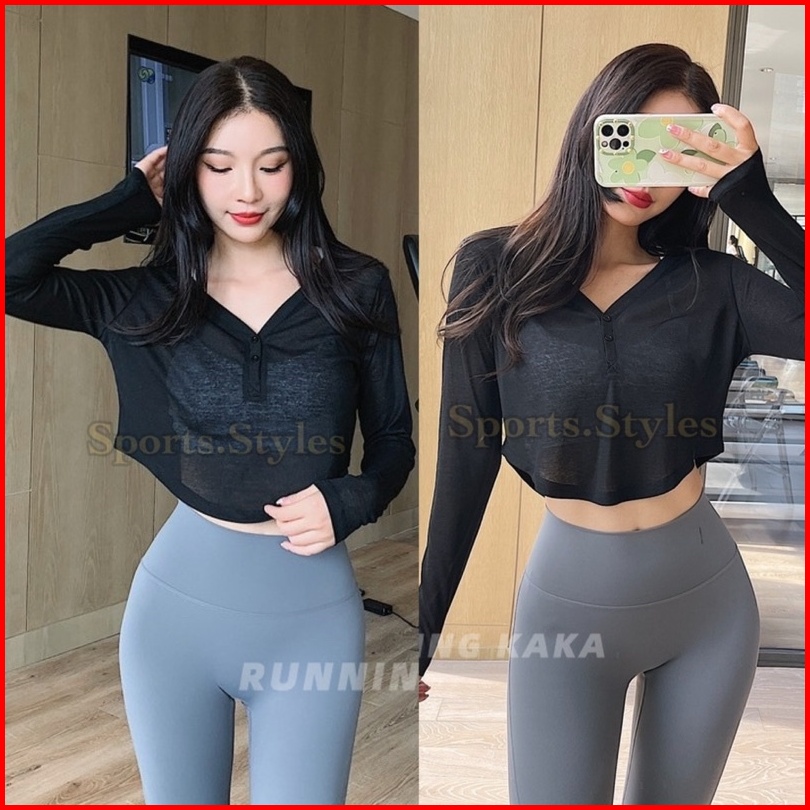 Sports.styles.id Baju Olahraga Wanita Dsl370 Crop Lengan Panjang Kancing Gym Fitness Zumba