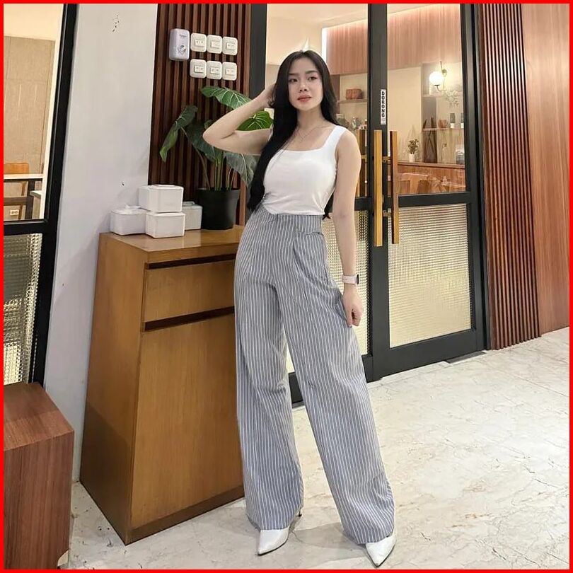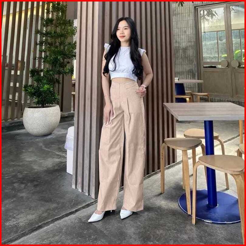 Rafisqy City Pants Kulot Stripe Wanita Celana Highwaist Wanita Kulot Lost Pants Wanita Celana Panjang Stripe Bangkok Gar