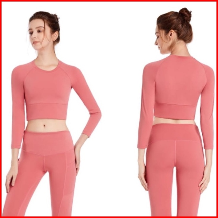 Baju Olahraga Wanita Lengan Panjang Model Crop Baju Senam Yoga Zumba Wsm 910