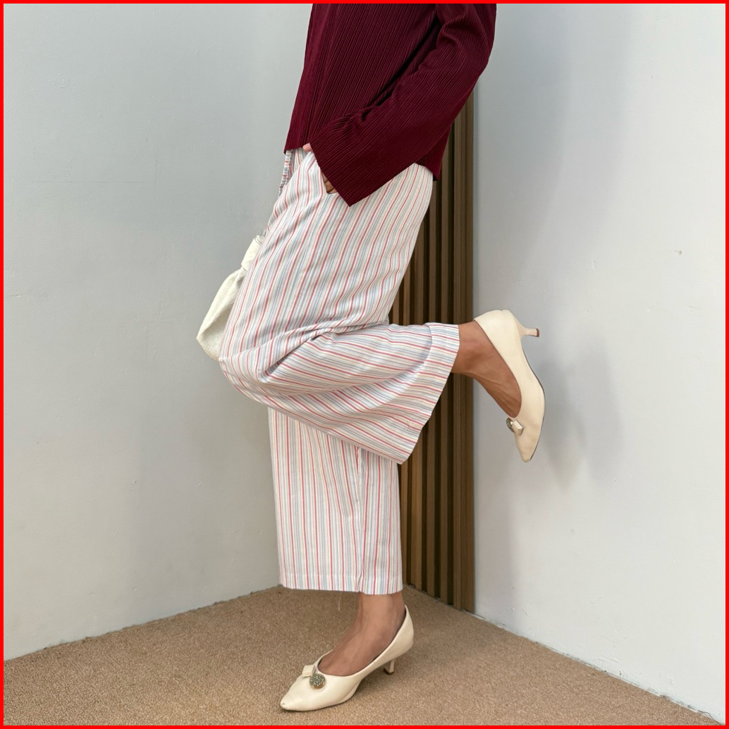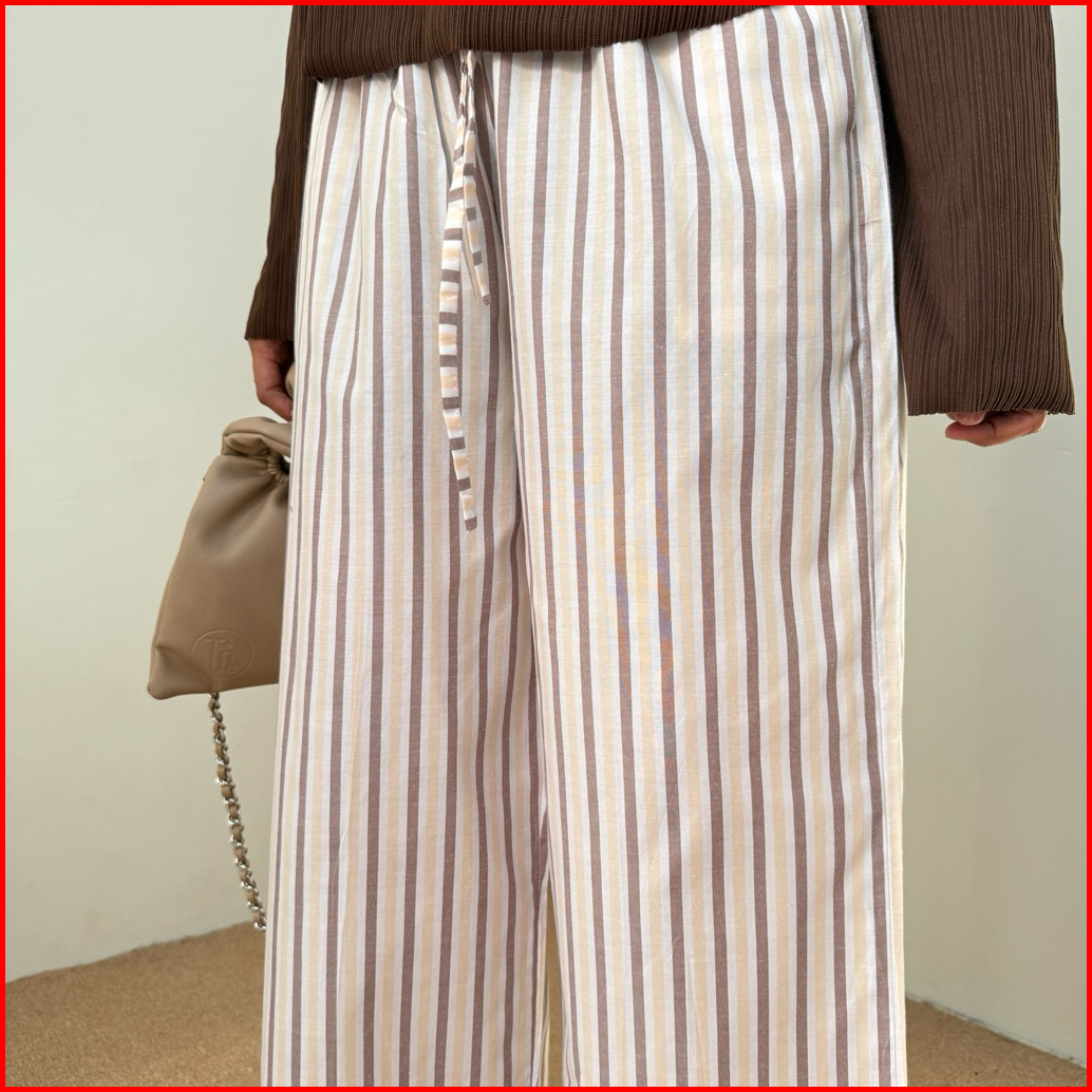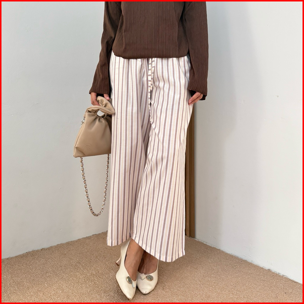 Salla - Celana Kulot Panjang Wanita Kekinian Celana Garis Wanita Highwaist Loose Cullote Pants Stripe Petite