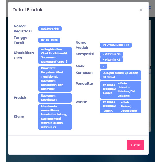 IPI Vitamin D3 + K2 25 Tablet - Suplemen Vitamin D3 dan K2