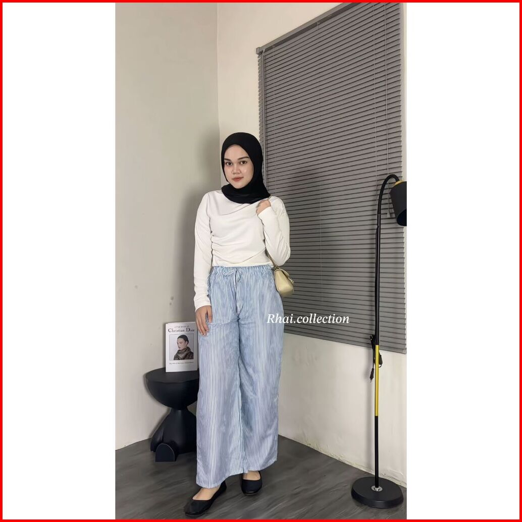 Rhai - Celana Kulot Wanita Kekinian Kulot Stripe Pants Wanita Celana Panjang Wanita Model Terbaru Kulot Stripe Wanita Pr