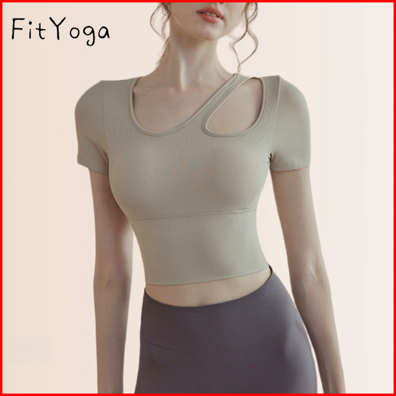 Ready Stockfityoga Quick Drying Thin Yoga Clothes Women S Breathable Sweat Absorbing Yoga Short Sleeve Yoga Top With Che