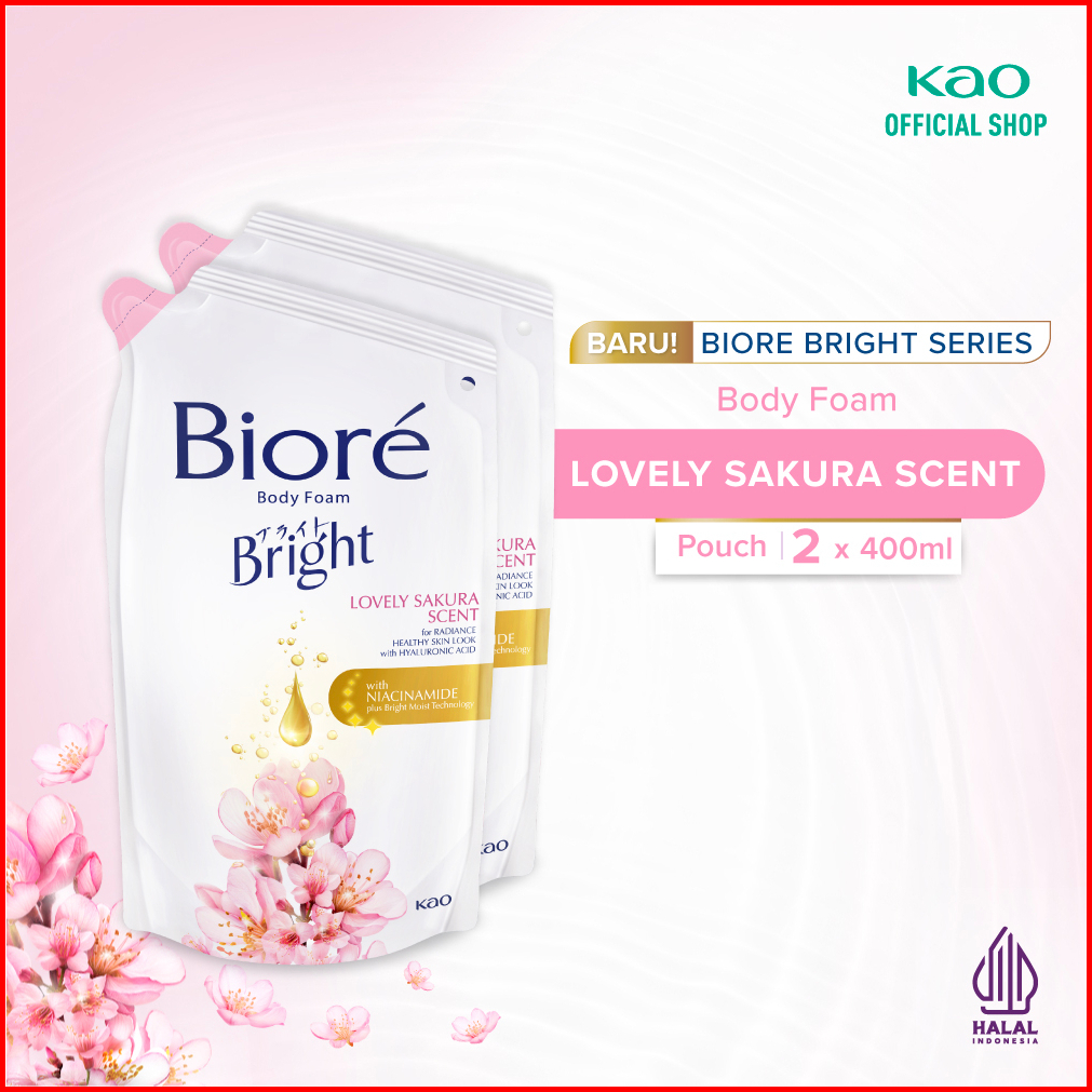 Biore Bright Sabun Mandi Cair Pencerah Kulit Lovely Sakura Hyaluronic Acid Refill 400ml X 2 Pcs