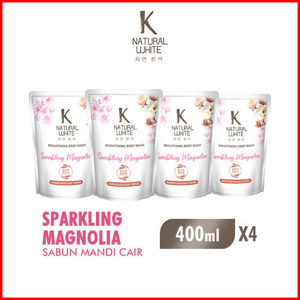K Natural White Sabun Mandi Cair Magnolia Pouch 400 Ml X4