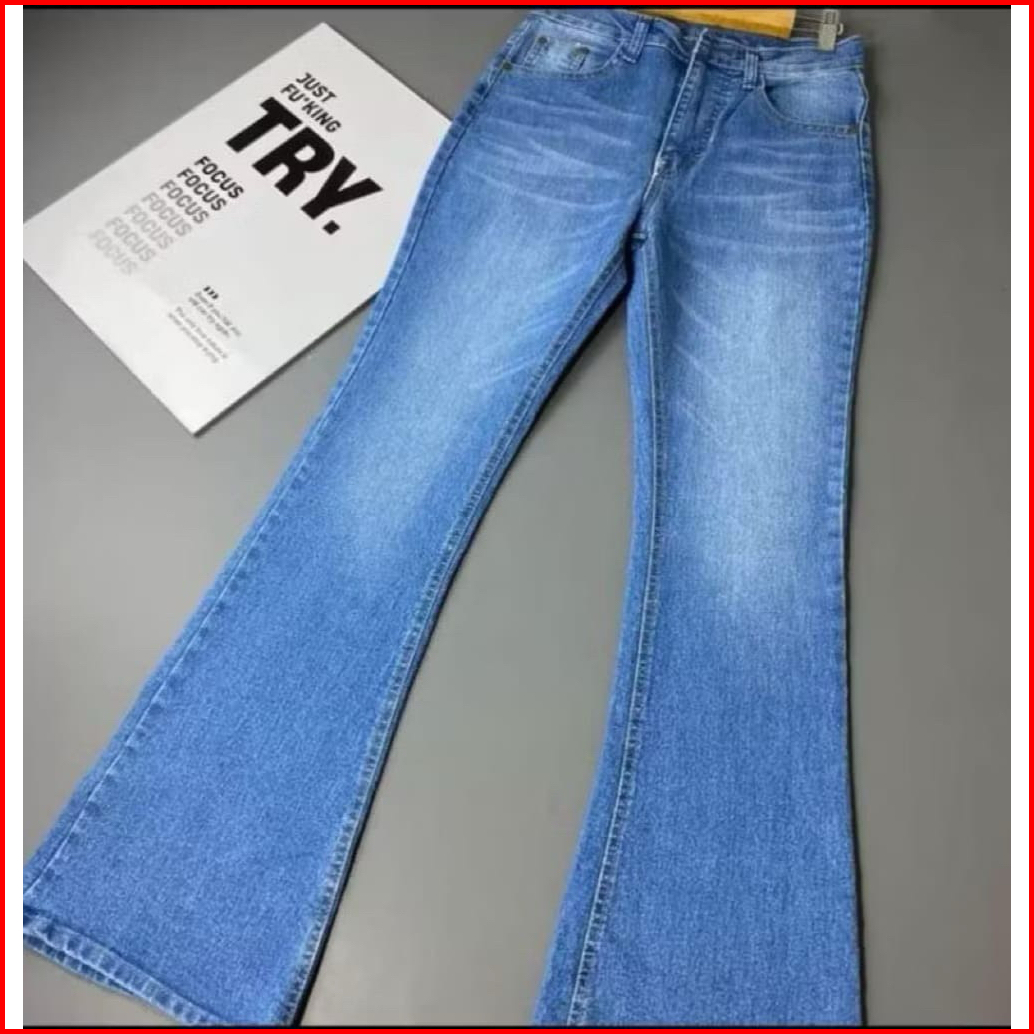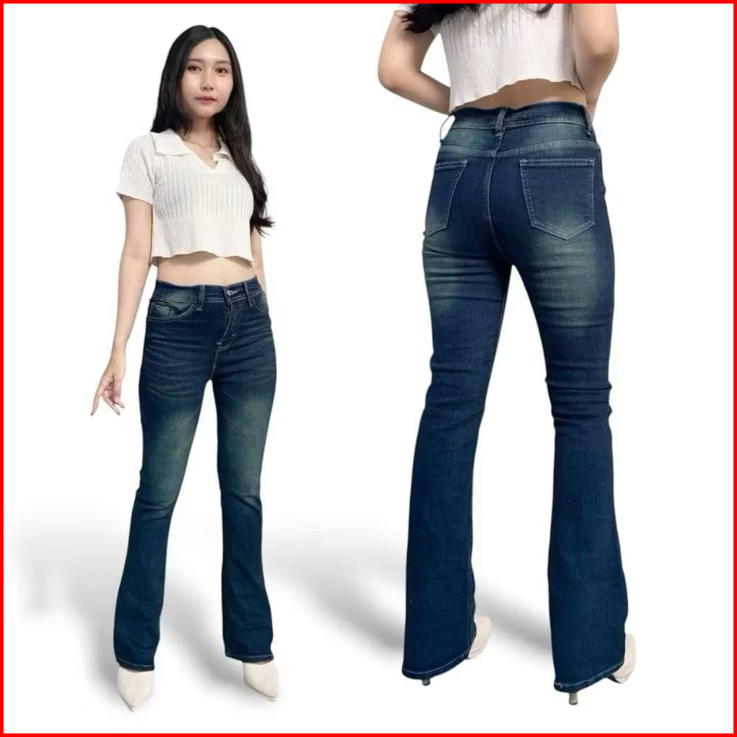 Celana Cutbray Retro Jeans Wanita High Waist Bahan Stretch Tebal Nyaman Dipakai