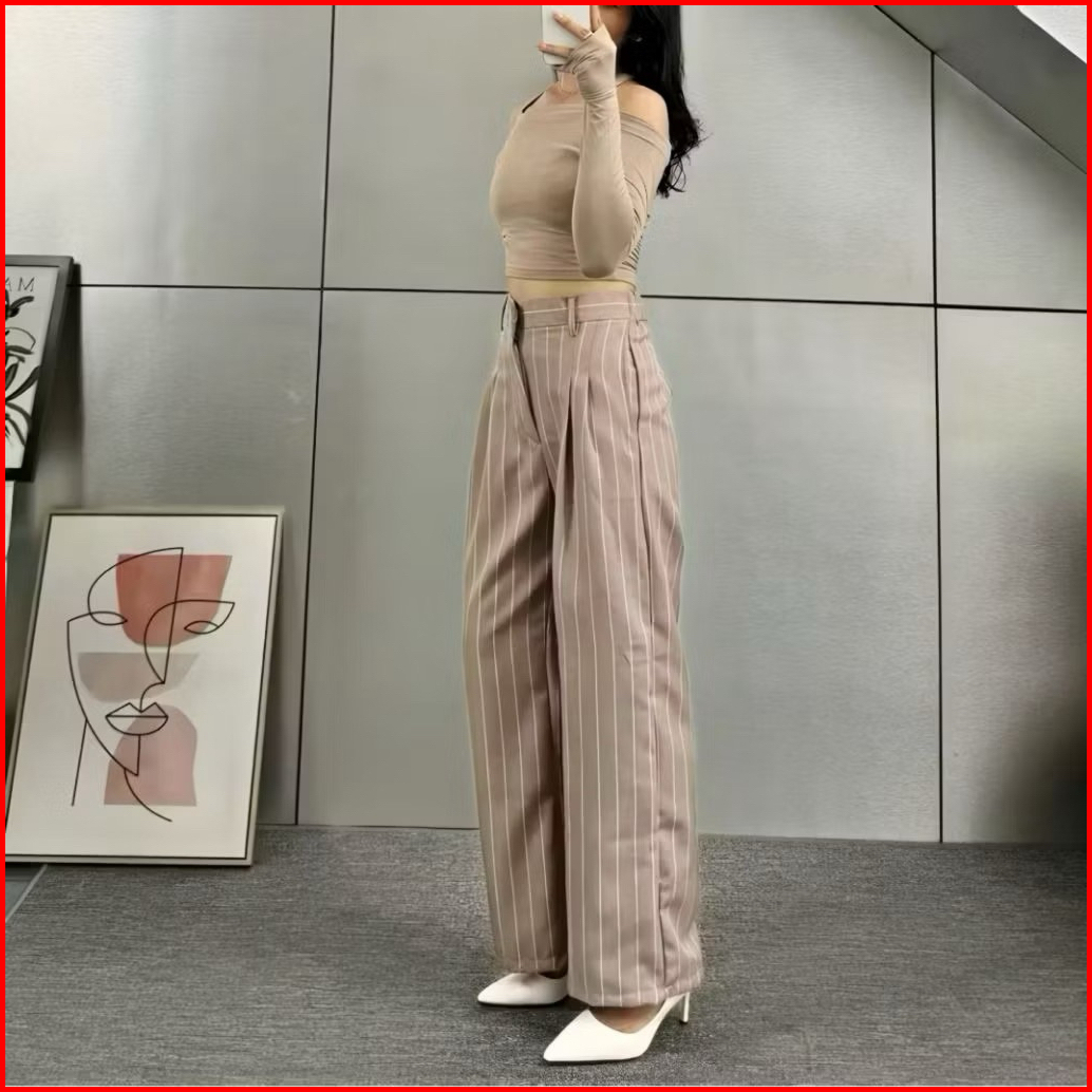 Celana Loose Pants Stripe Trouser Wanita Celana Anti Kusut