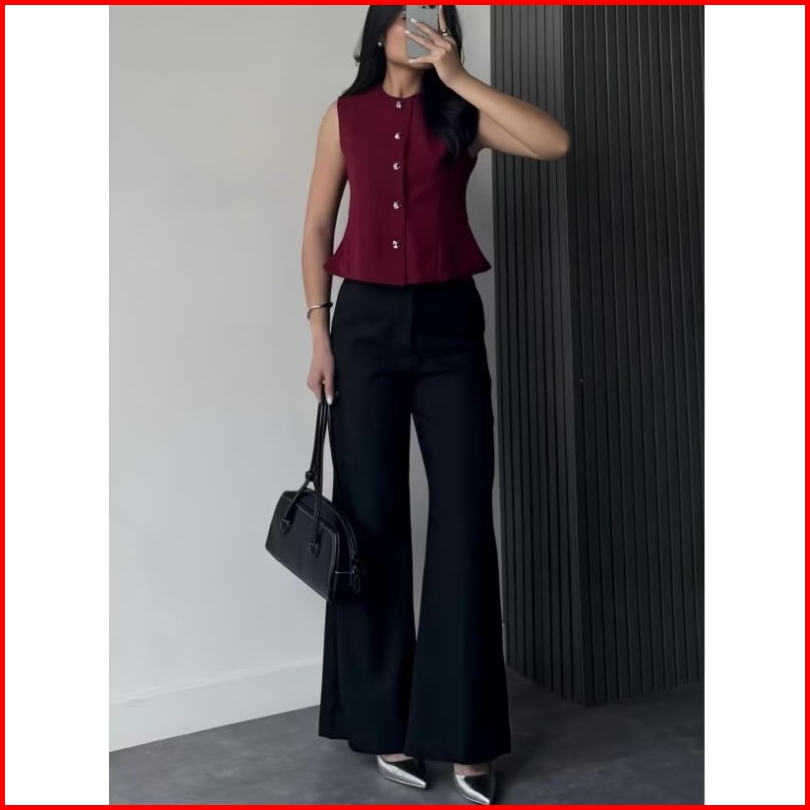Etta Pants - Celana Semi Flare Pants Highwaist - Celana Kulot Cutbray Korean Style Wanita