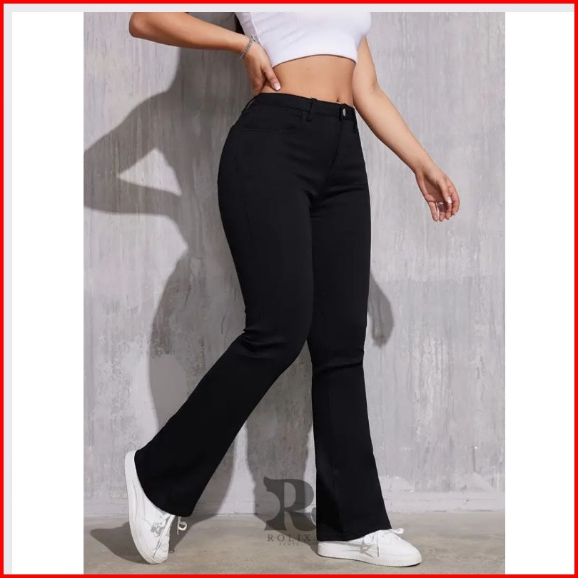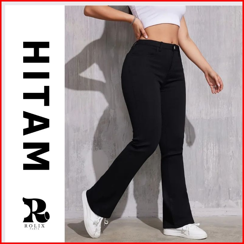 Celana Jeans Cutbray Wanita Melar Highwaist - Rolix Cutbray Jeans Wanita Stretch