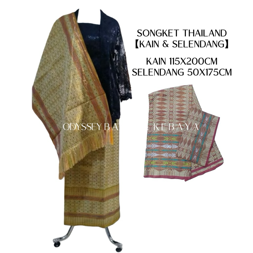Kain dan Selendang Songket Thailand Mewah Kain Sarung Songket