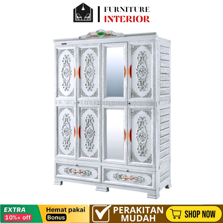 lemari pakaian plastik napolly 4pintu MAHKOTA CABROTA 466 DK - lemari pakaian plastik serbaguna minimalis