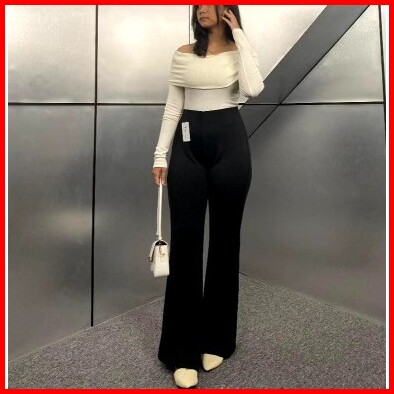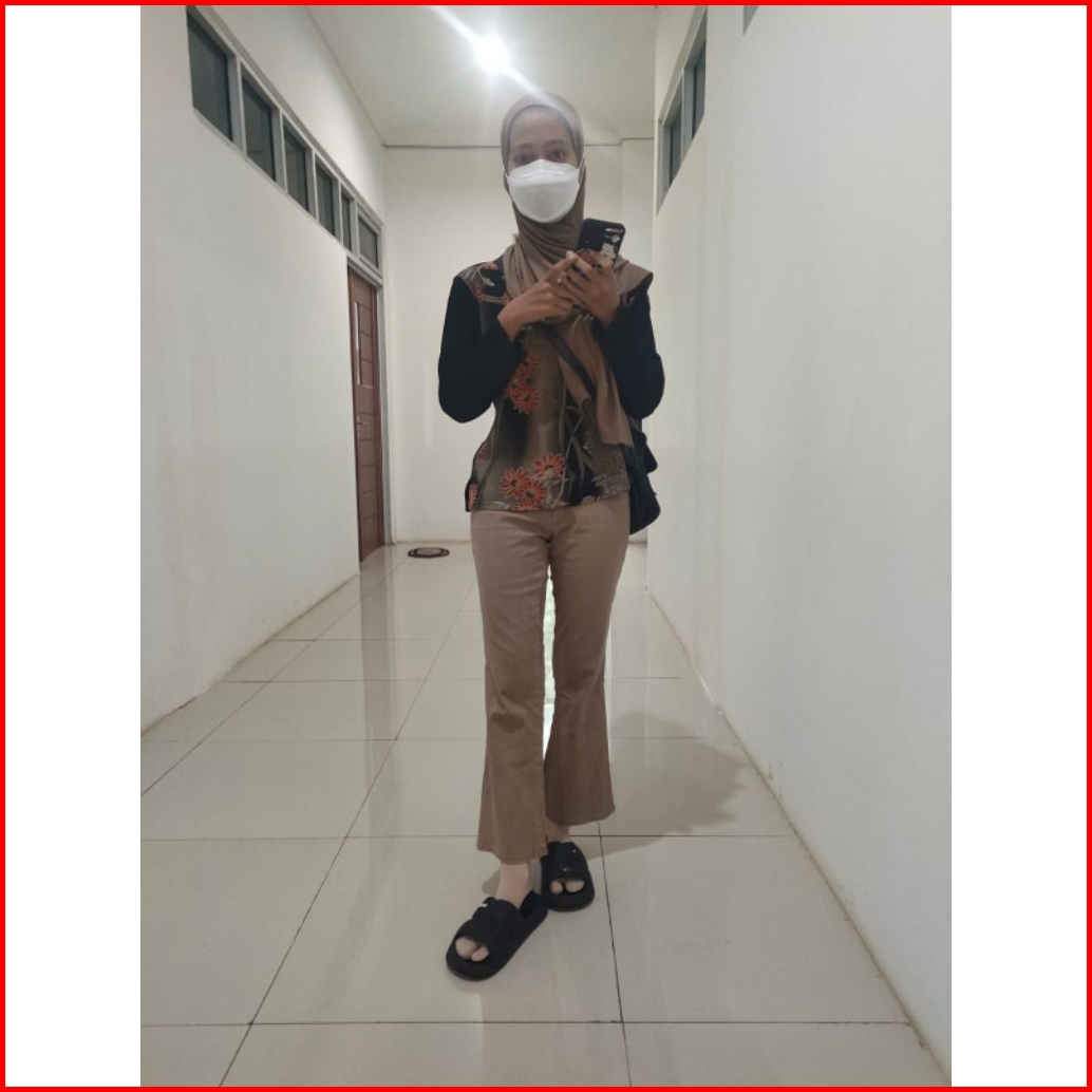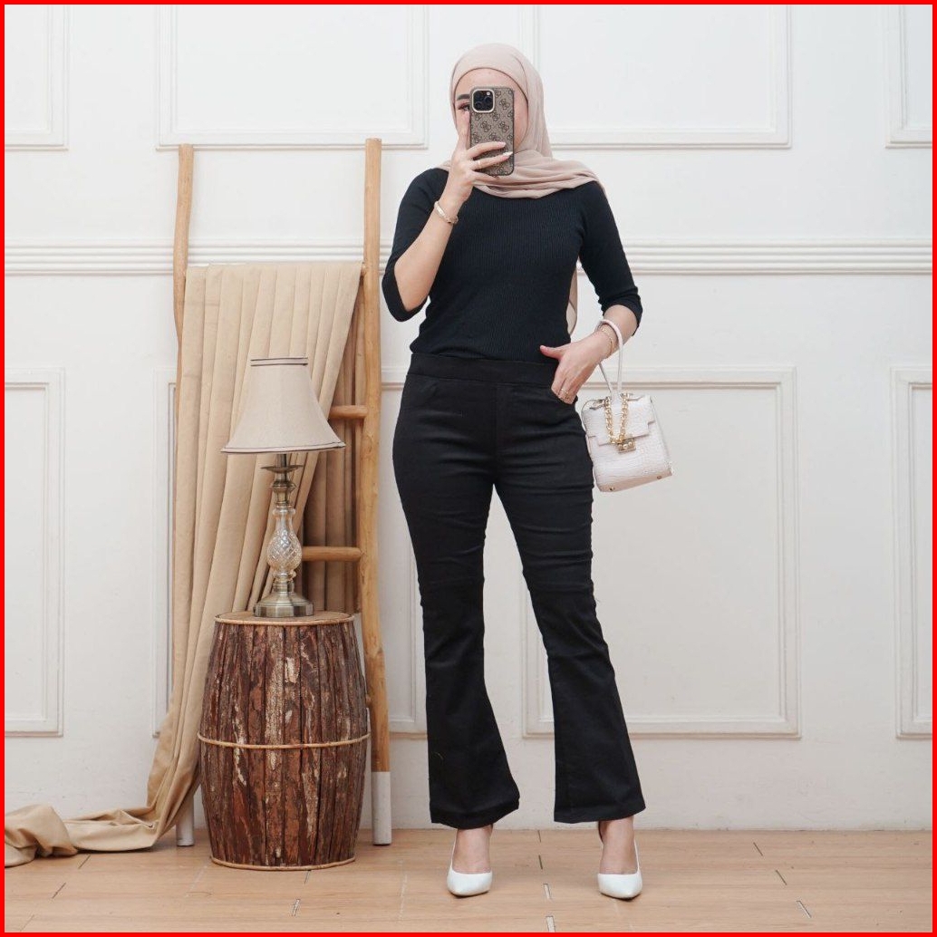 Bengalinepants.id - Celana Cutbray Wanita Kerja Kantor Bahan Bengaline Cutbry Wide Leg Pinggang Karet Elastis