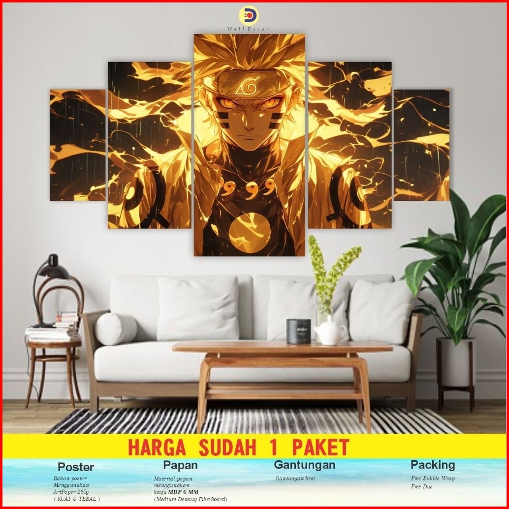 Cimon 1 Set Poster Kayu Anime Naruto Pajangan Hiasan Dinding Naruto 5pcs