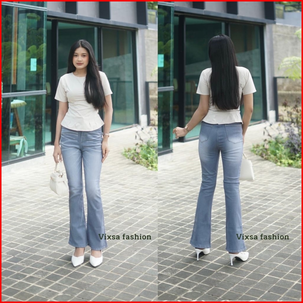 Vixsa - Celana Cutbray Jeans Retro Haighwaist Celana Jeans Cutbray Wanita Premium