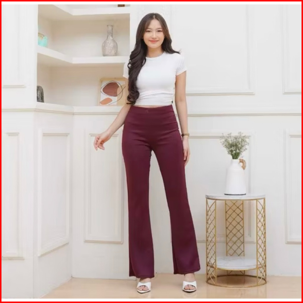Flare Pants Celana Cutbray Scuba Highwaist Kekinian