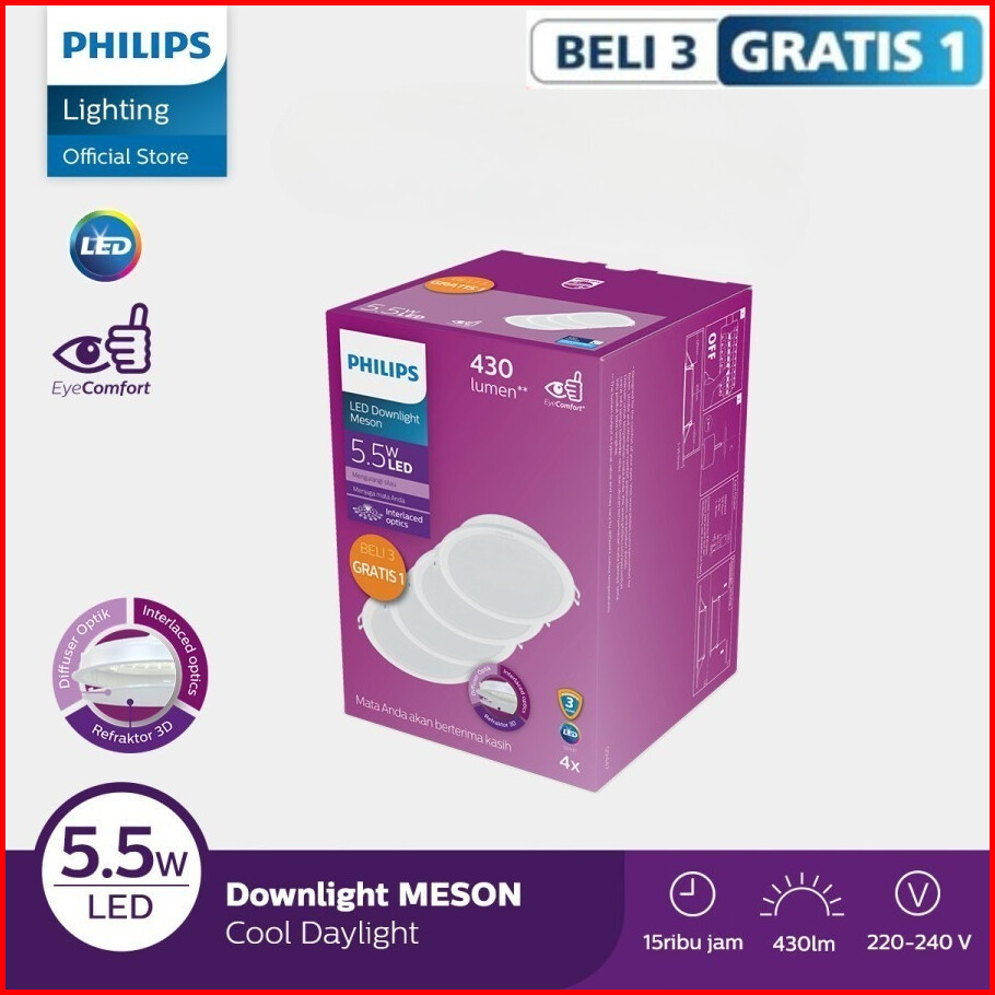 Philips Downlight Meson Multipack 3 5w 5w 9w 13w 17w 21watt 24 Watt 6500k Beli 3 Gratis 1