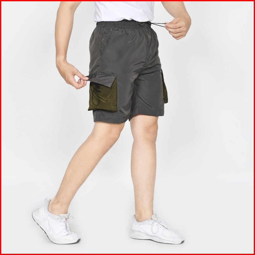 Bootloop - Celana Boardshort Cargo - Celana Cargo Pendek Pria Dan Wanita Abu Combinasi Hijau