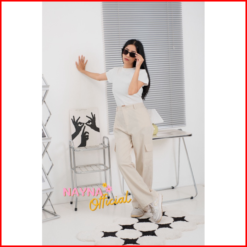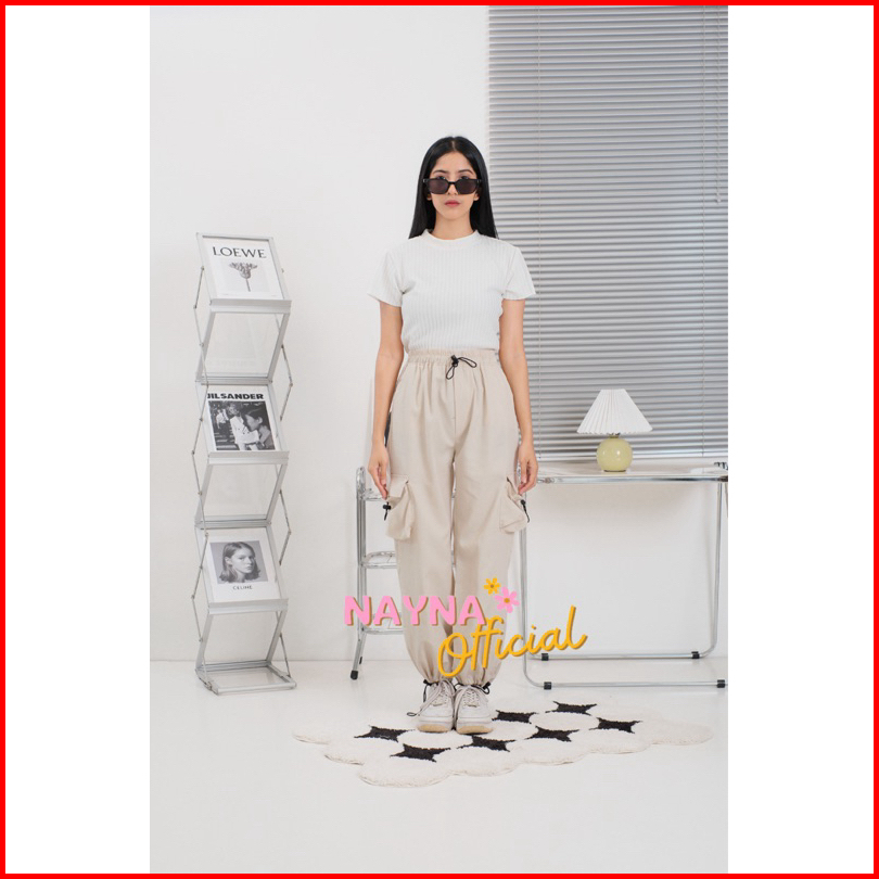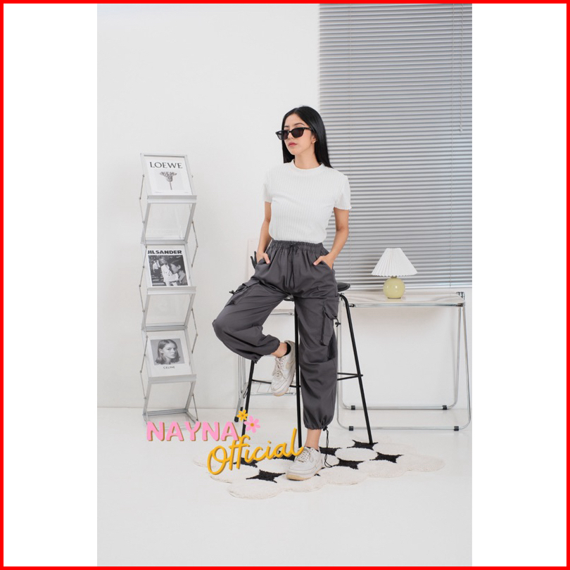 Kiya Cargo Pants Wanita Highwaist Loose Korean Style Jumbo - Celana Kargo Wanita Terbaru