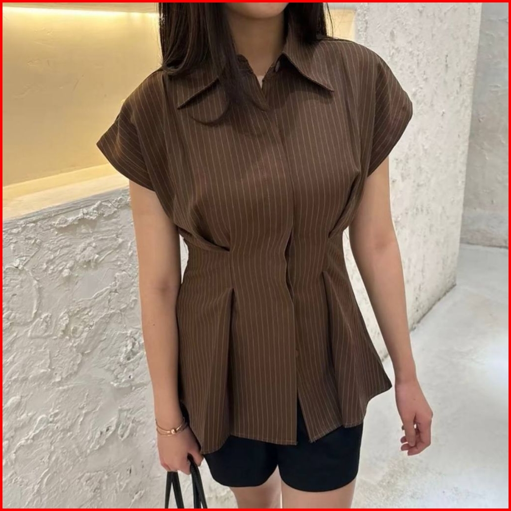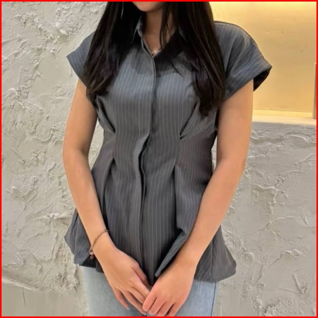 Av-id Kemeja Wanita Salur Alba Top Stripe Fitted Shirt Slim Fit Lengan Pendek Casual Kantor Korean Style