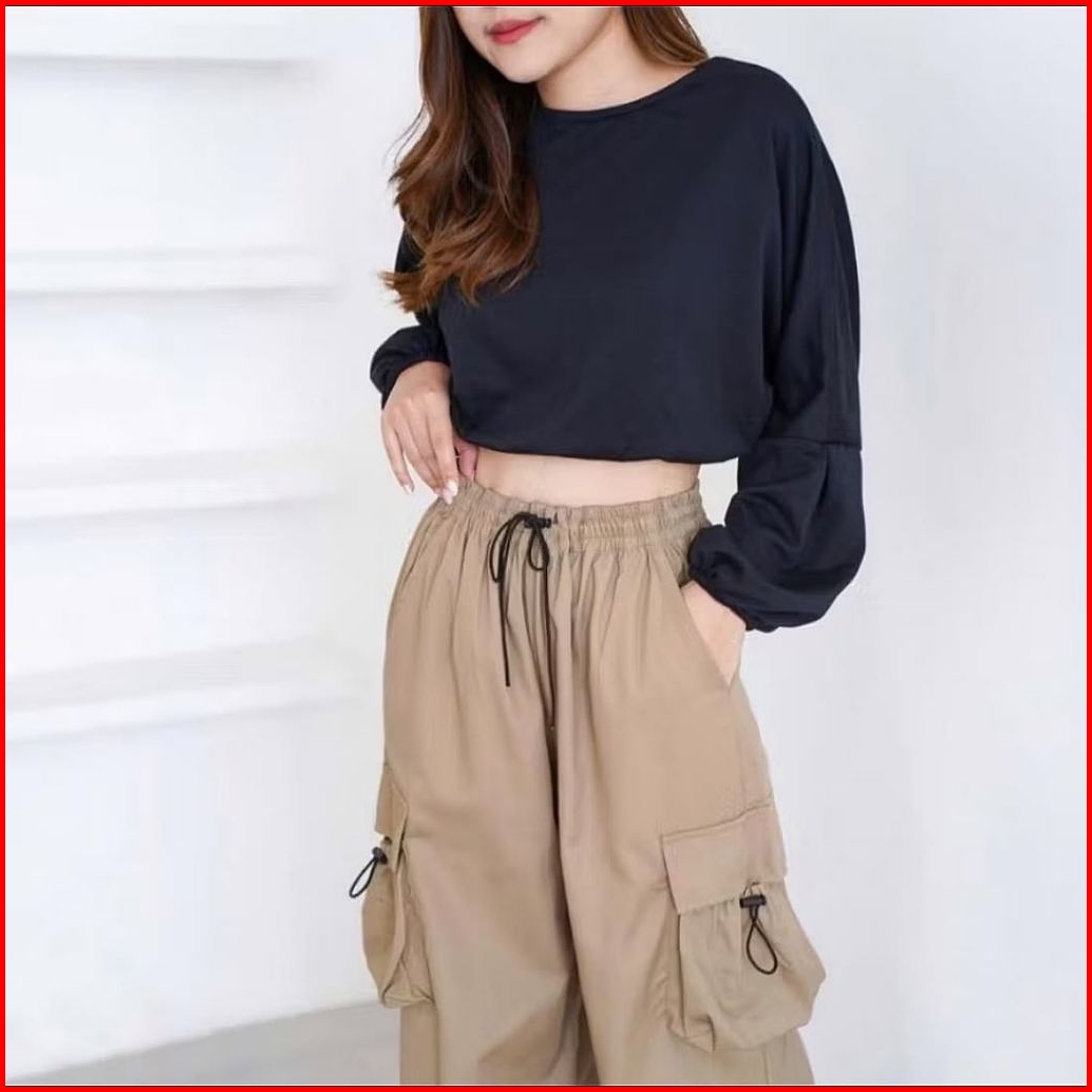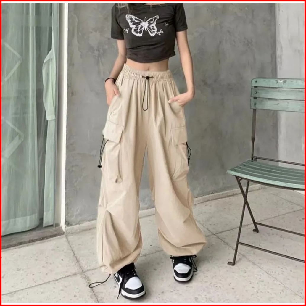 Cargo Pants Wanita Highwaist Loose Pants Korean Style Jumbo Celana Cargo Wanita Terbaru