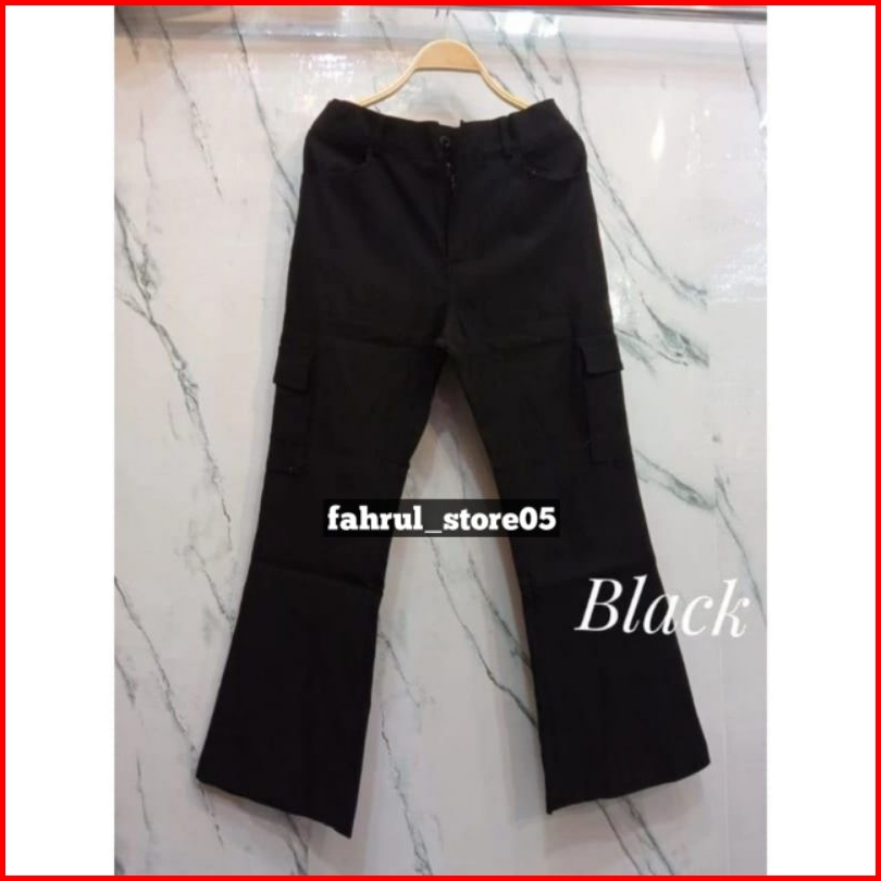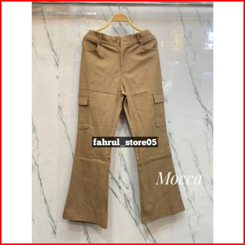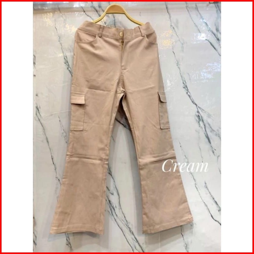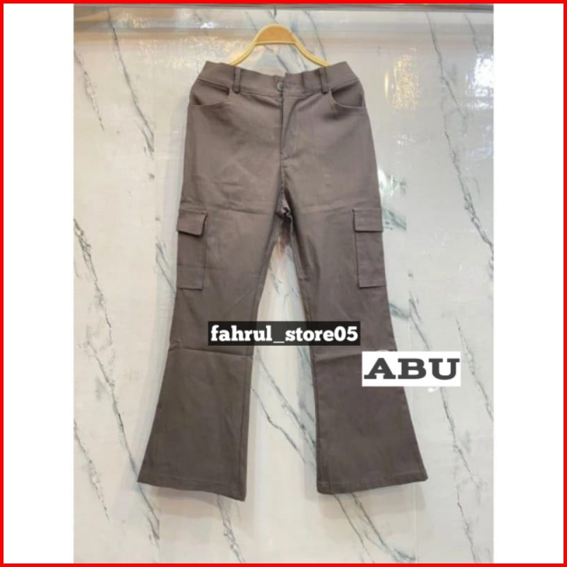Celana Cutbray Cargo Wanita Highwaist Streach Elastic Soft Combet Gread A Melar M L Xl Xxl