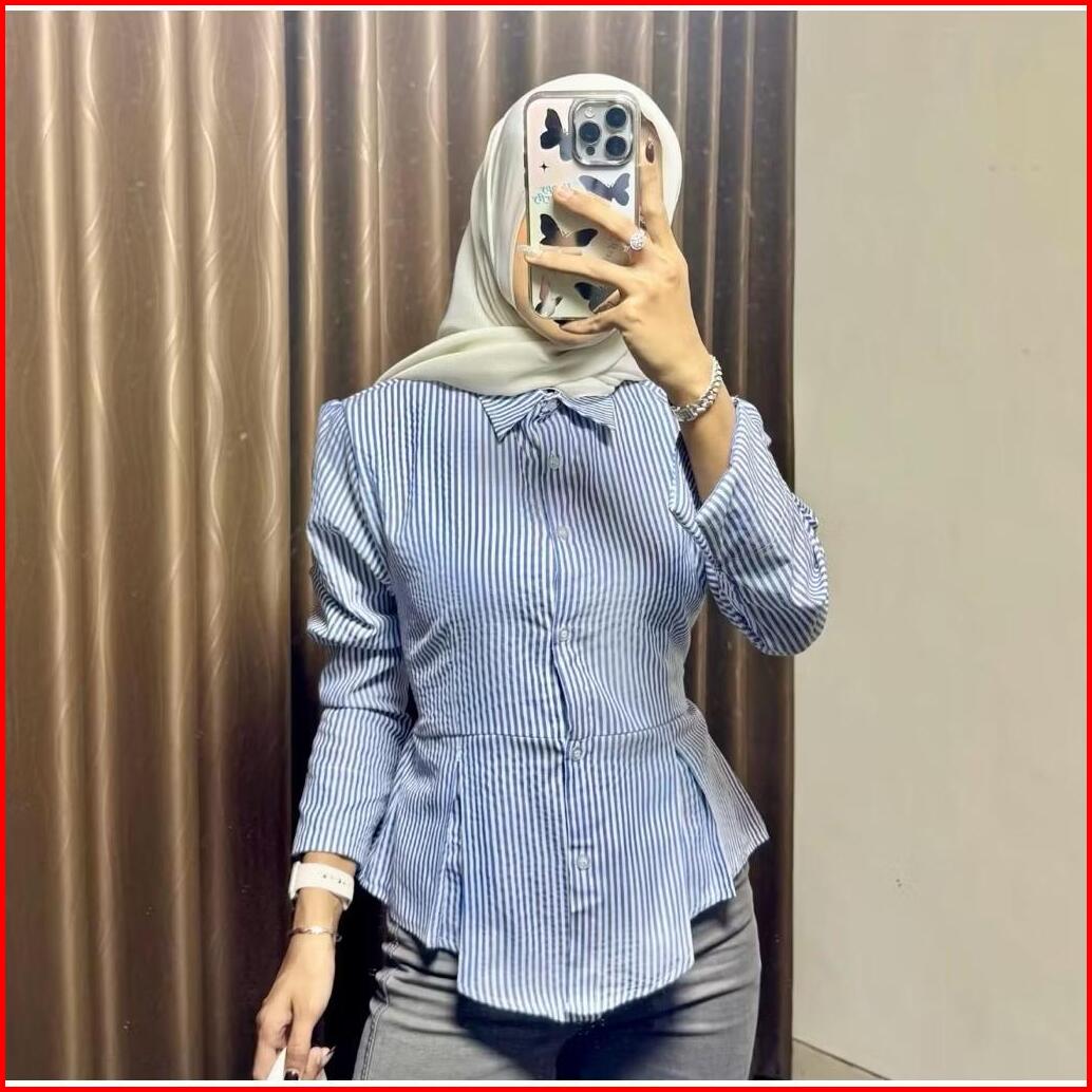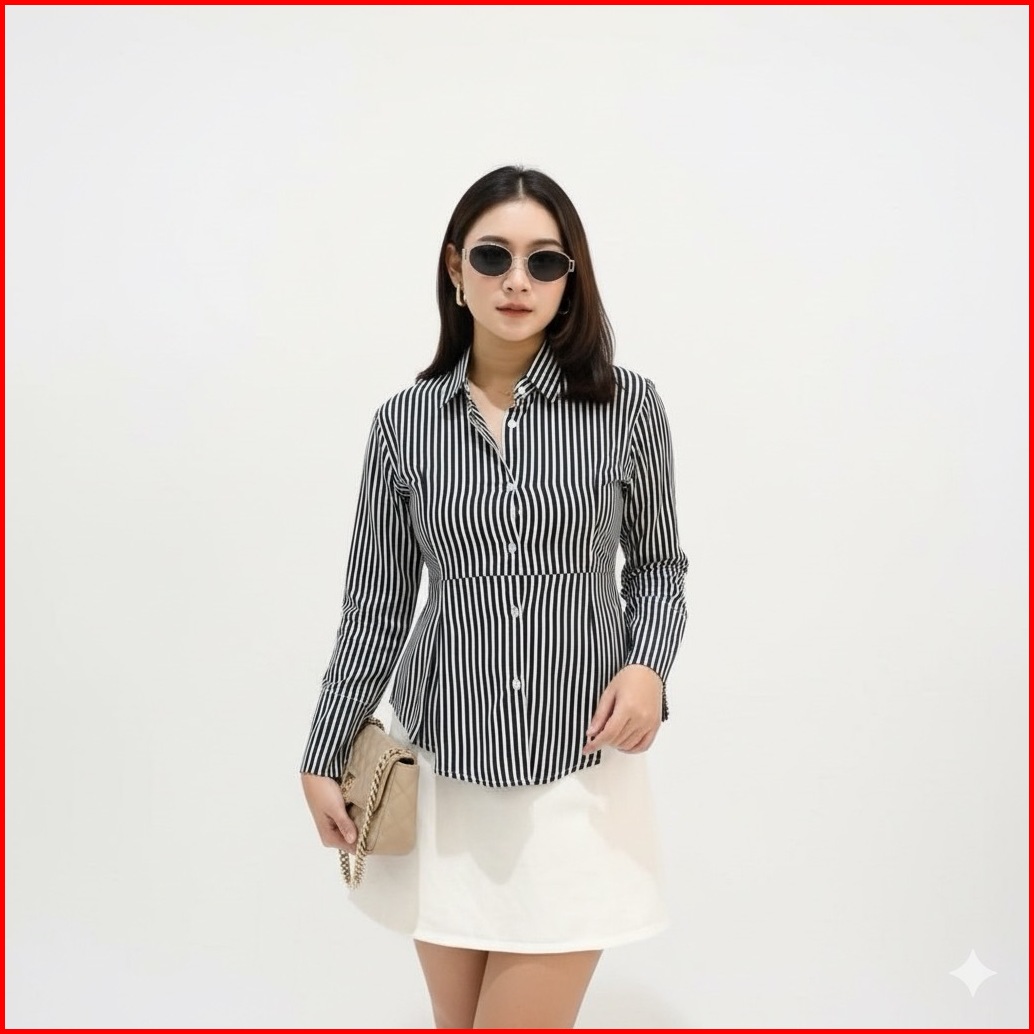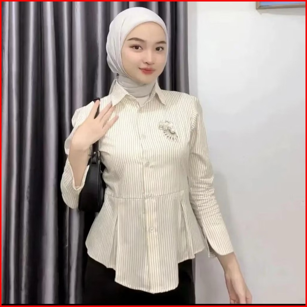 Kanara - Kemeja Stripe Rempel Fit Body Wanita Look Korean Style Kekinian Terbaru