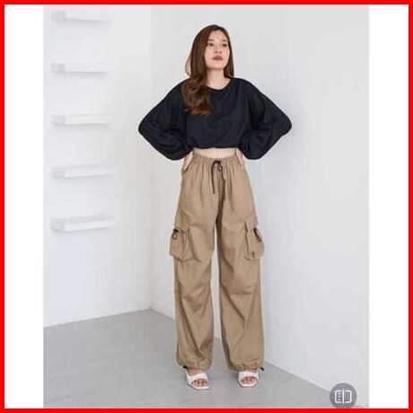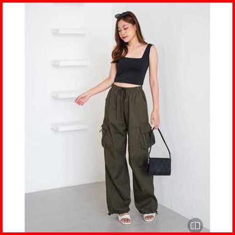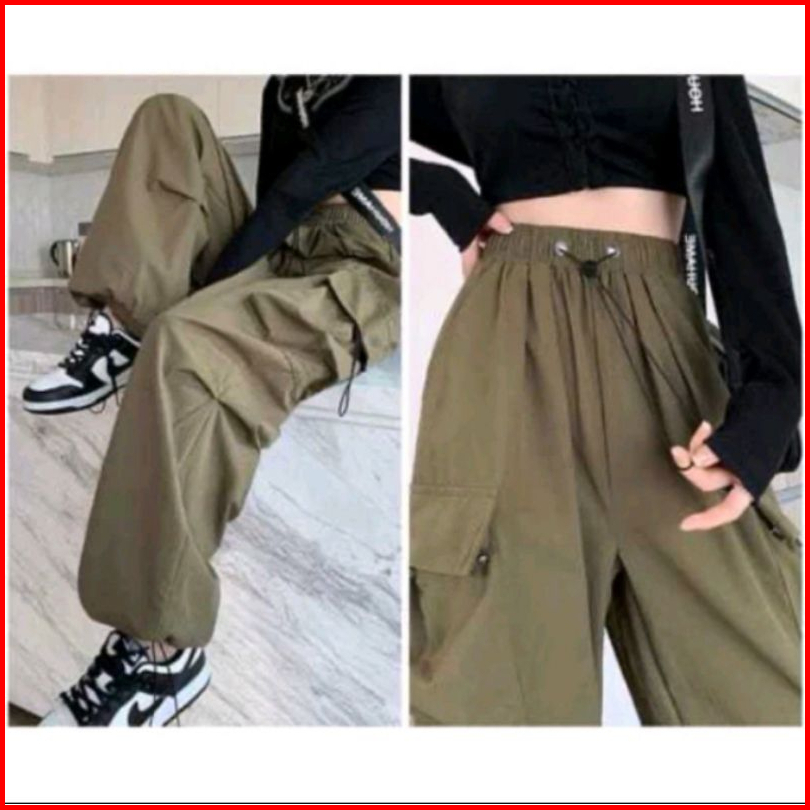 Celana Cargo Wanita Highwaist Loose Pants Trouser Korean Style Celana Wanita Terbaru