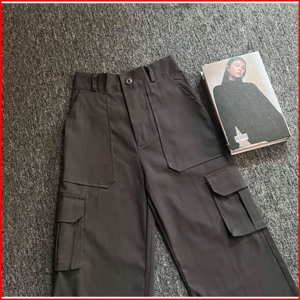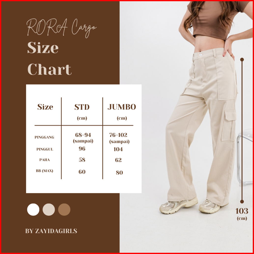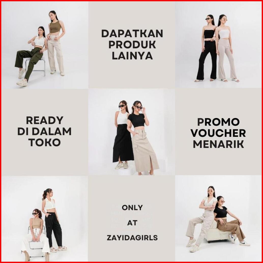 Zayida - Celana Cargo Wanita Katun Twill Stretch Melar Highwaist Loose Korean Style Jumbo
