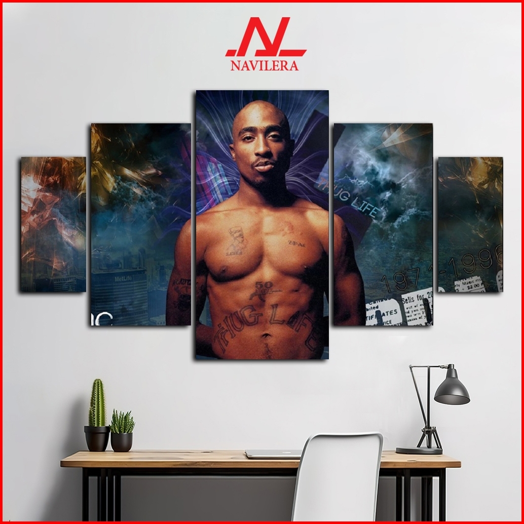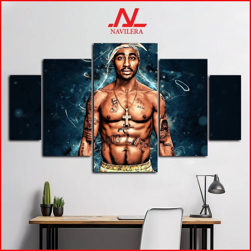 Navilera.co Hiasan Pajangan Dinding Band Poster Band 1 Set Tupac Shakur 5 Pcs Poster Kayu Wall Decor