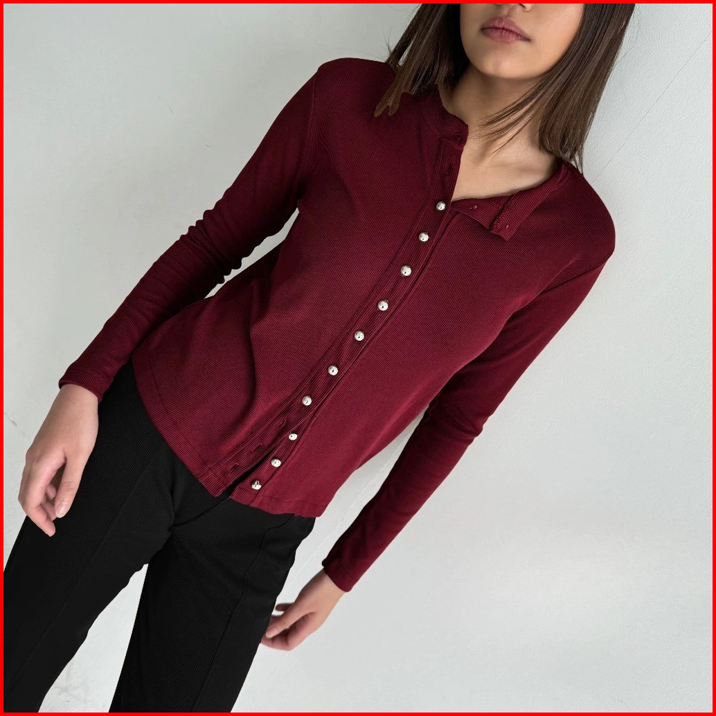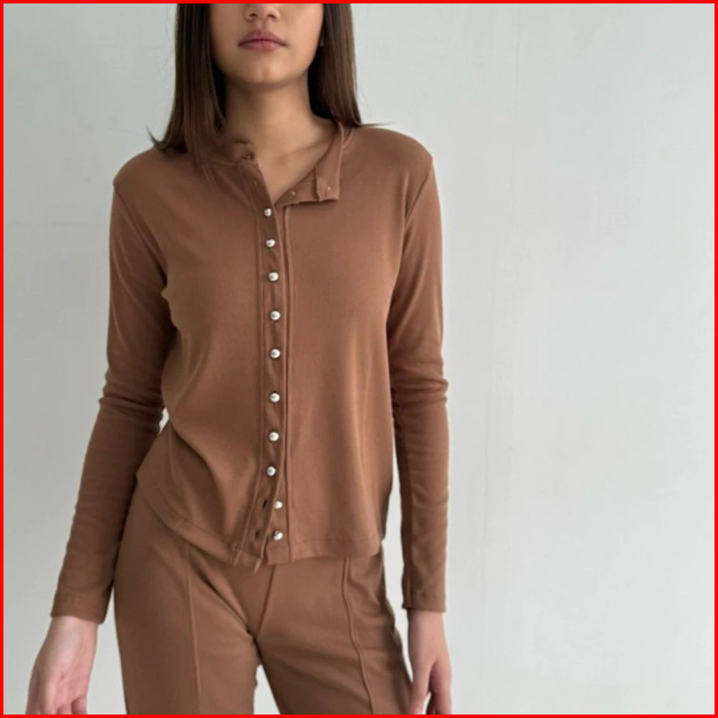 Kaia Top Long Sleeve Full Button Vintage Atasan Knit Kancing Lengan Panjang Basic Korean Top