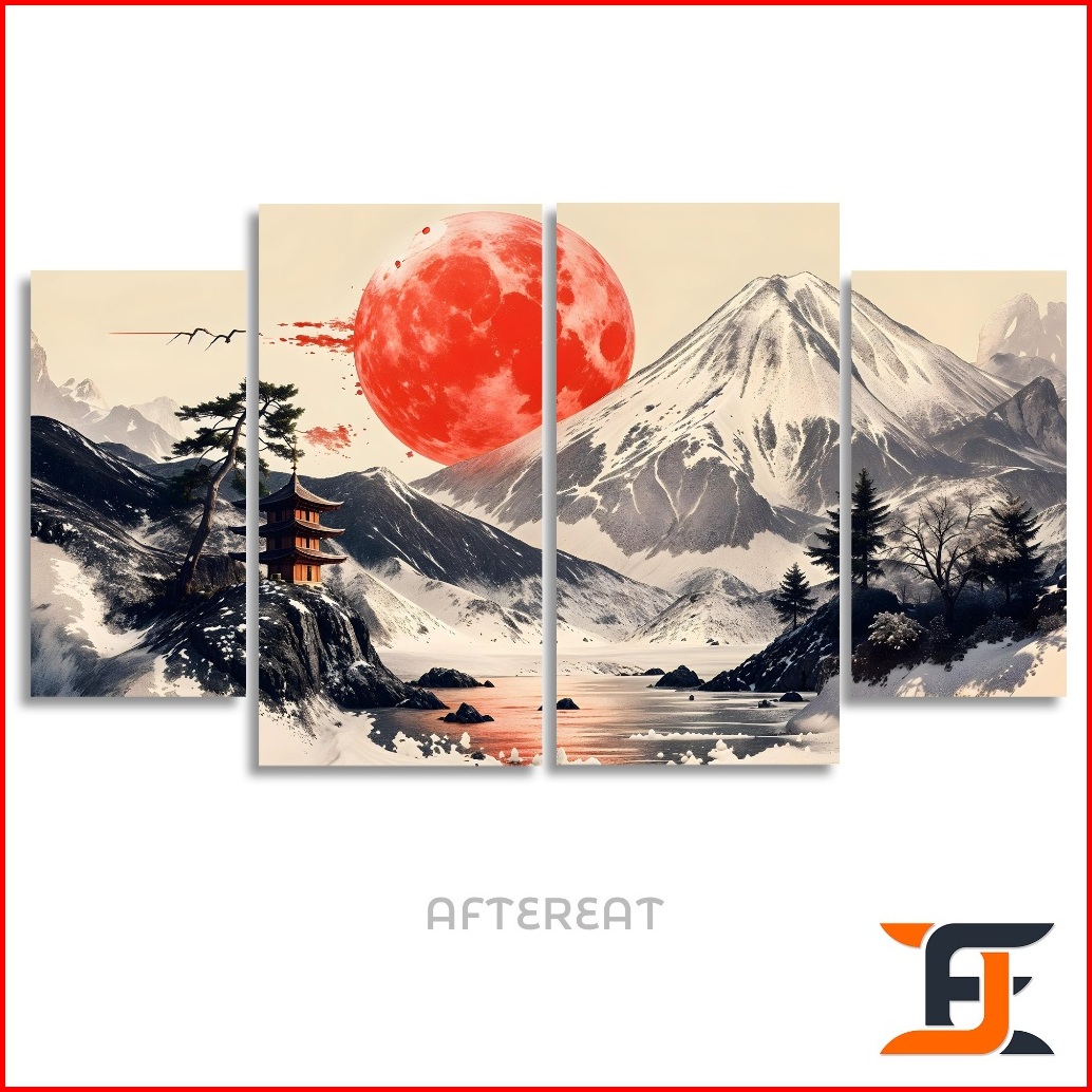 Hiasan Dinding 4 In 1 Set Chinese Mountain Poster Walldecor Abstrak Painting Pajangan Kayu Aesthetic