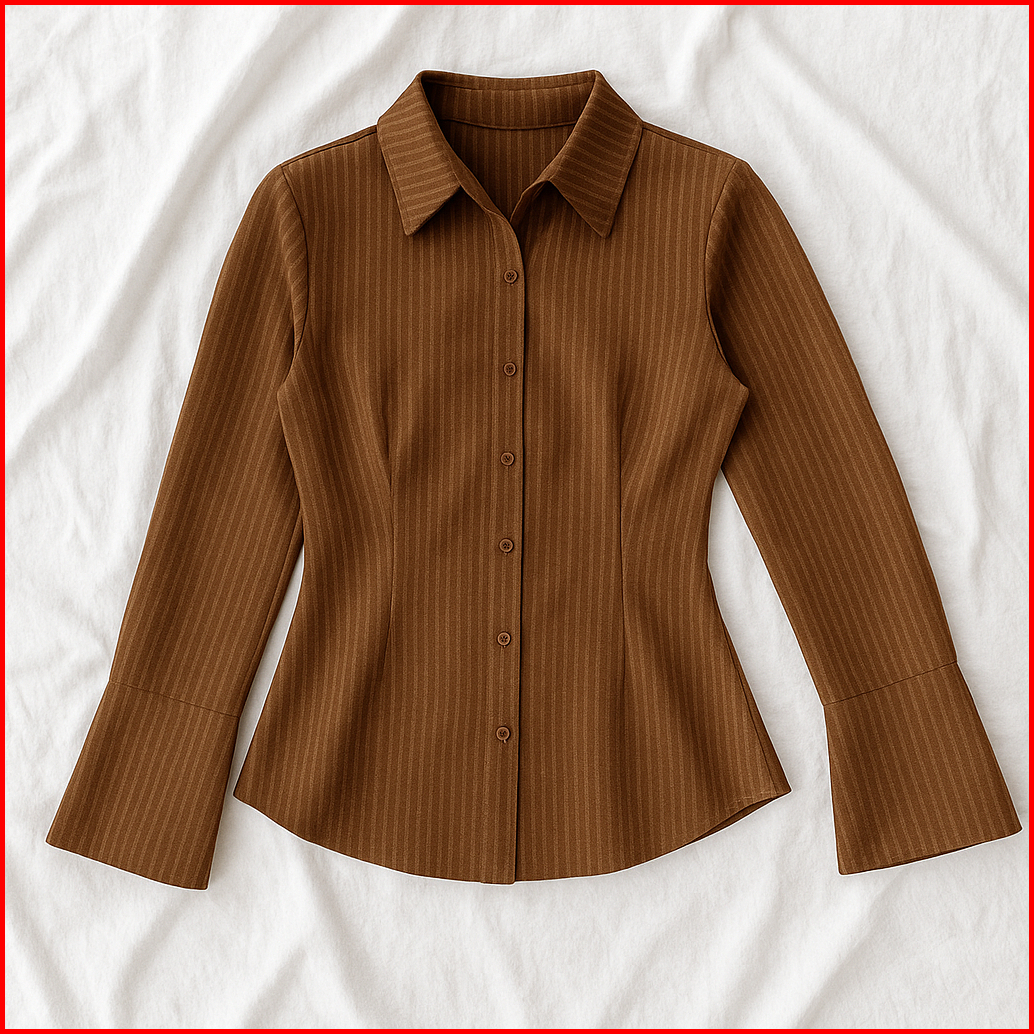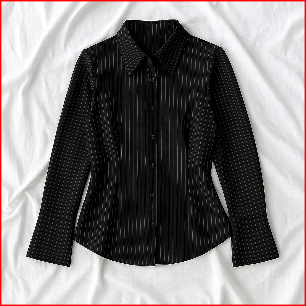 Naluna Studio Moris Top Atasan Stripe Wanita Lengan Panjang Basic Collar Top Casual Long Sleeve Kerah