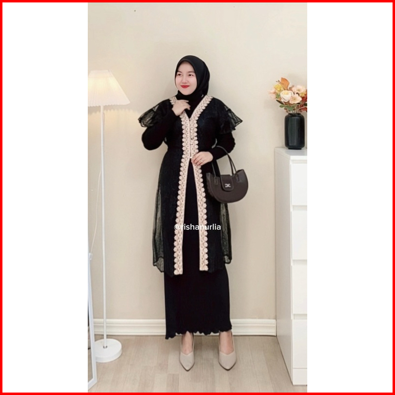 Shella Outer Brukat Renda Long Outer Kondangan Outer Dress Wanita