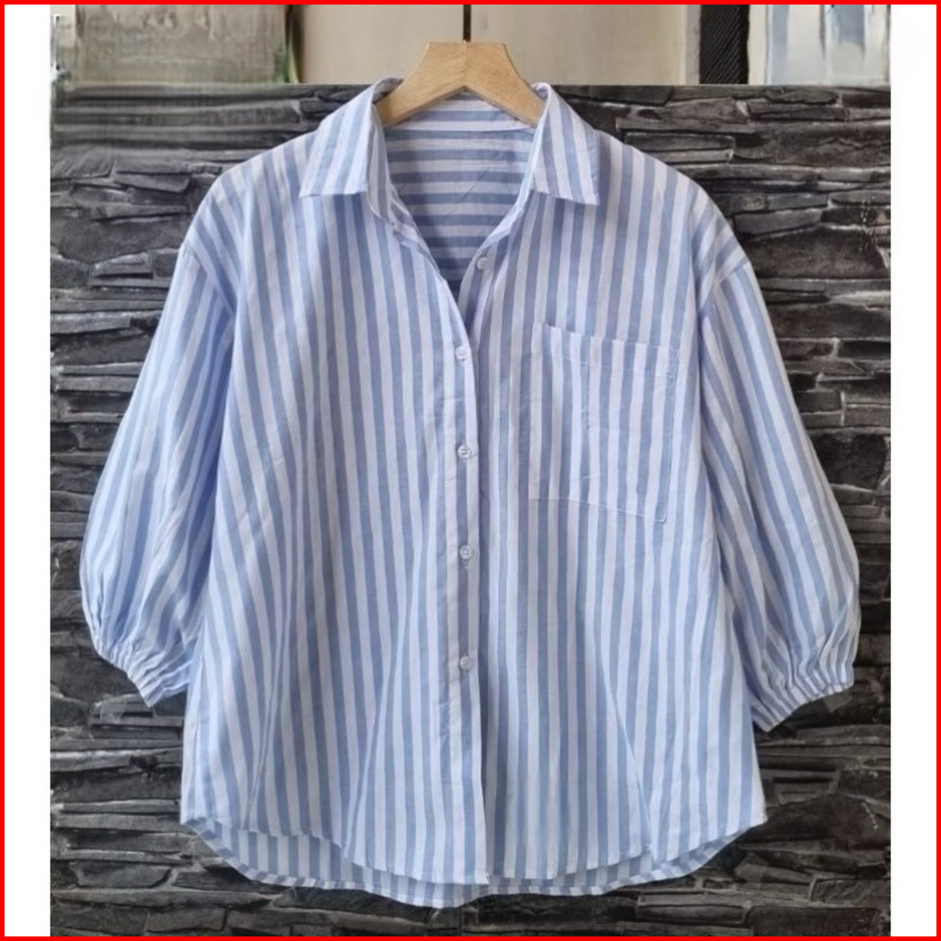 Maharini Kemeja Salur Katun Haruka Lengan Karet