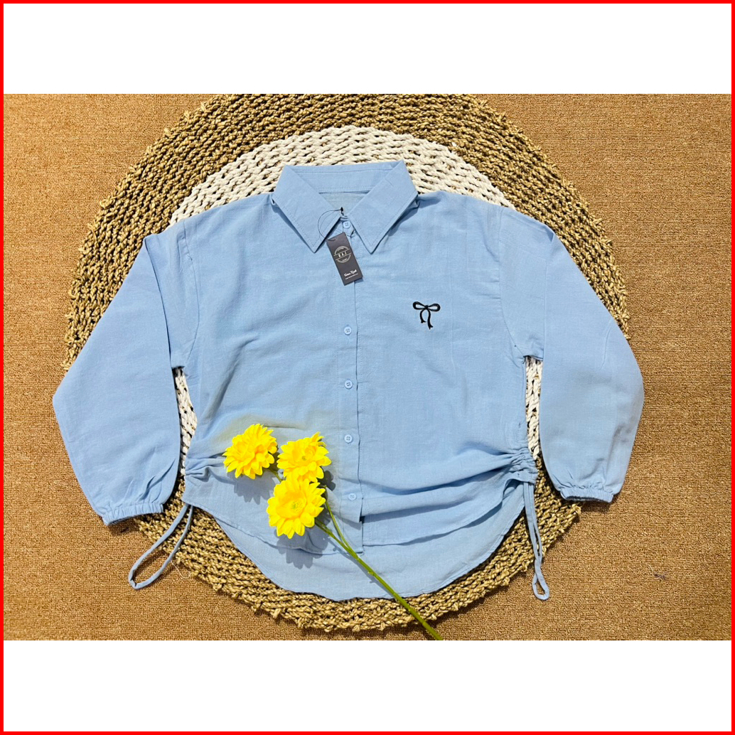 Kemeja Sania Linen Atasan Wanita Serut Linen Bordir