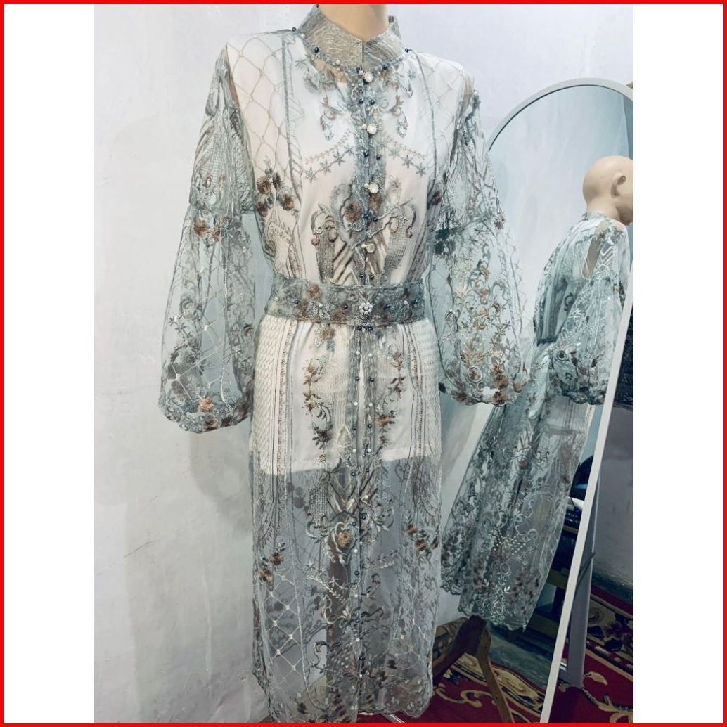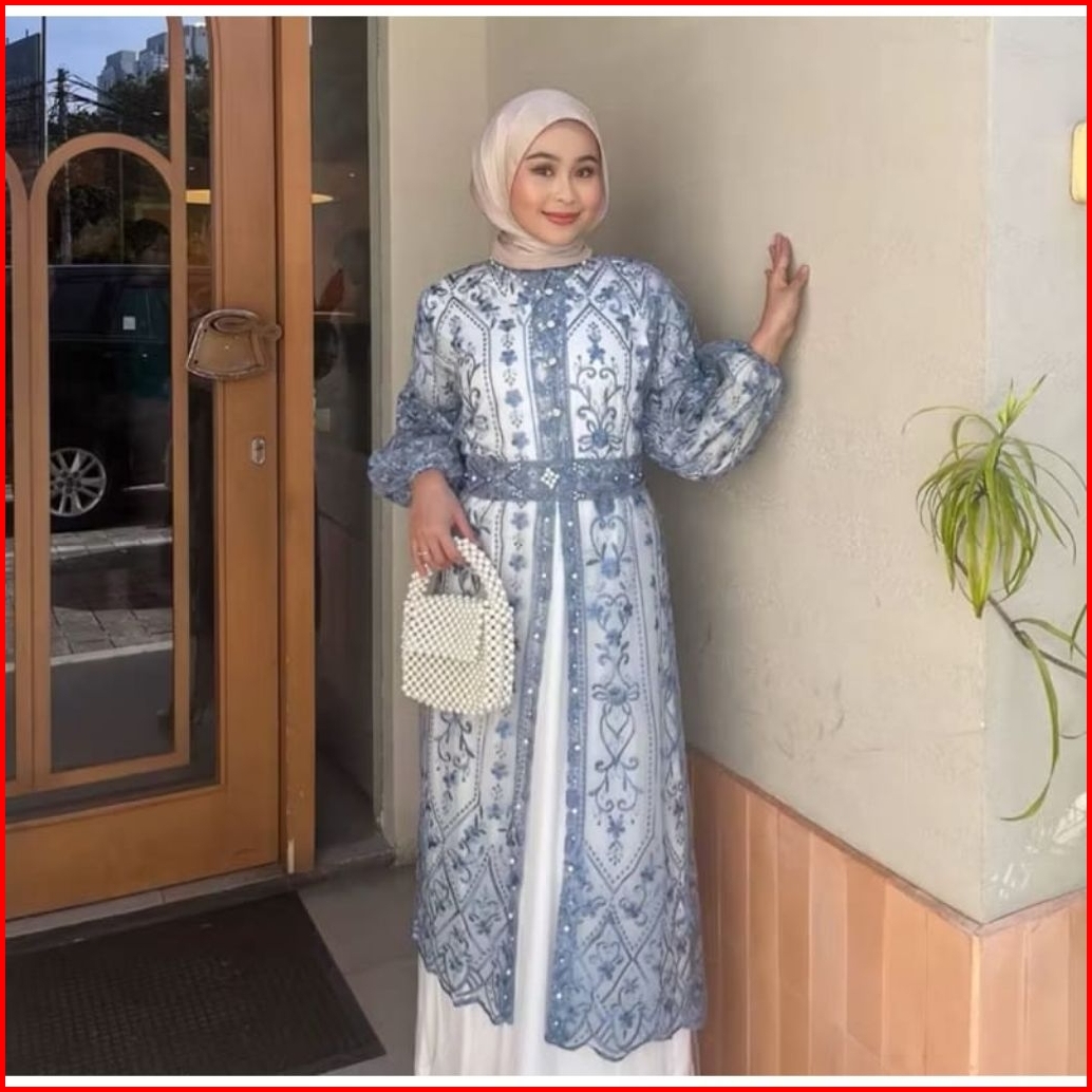 Azzura Outer Brukat Dres Gamis Full Mutiara Outer Brukat Sapto Atasan Wanita Outer Brukat Kondangan Lebaran Modern