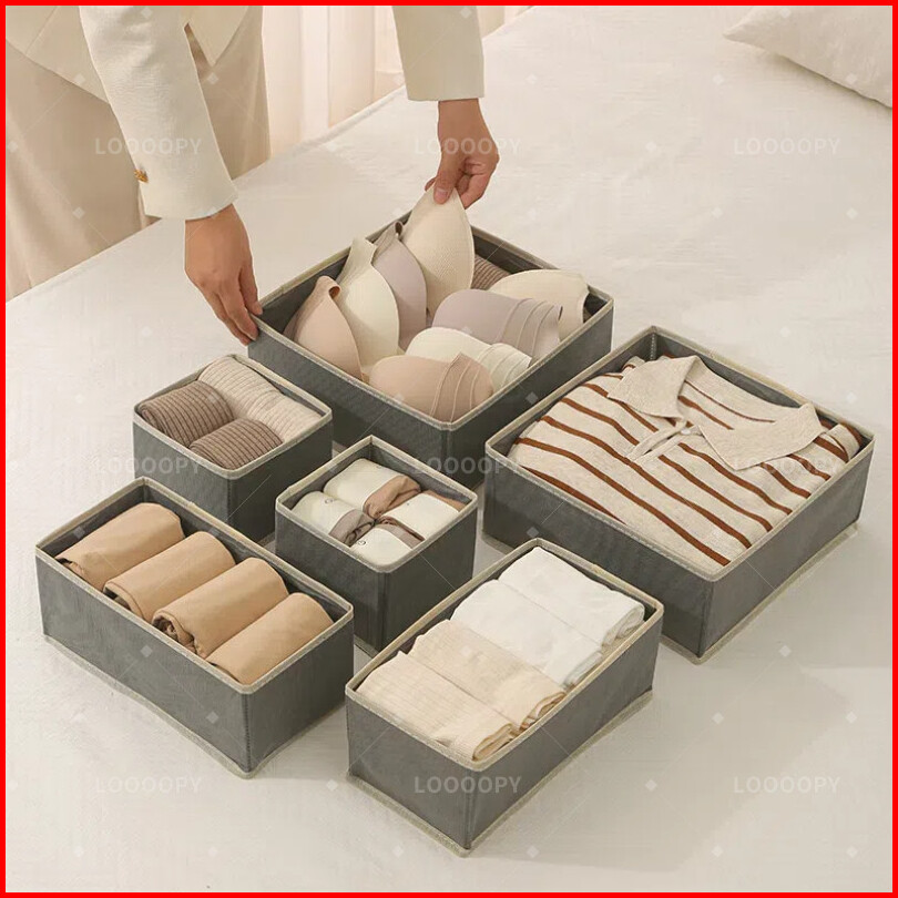 Loooopy Kotak Penyimpanan Serbaguna Set Isi 6 Storage Box Organizer Kain Sekat Laci Lemari Tempat Penyimpanan Celana Dal