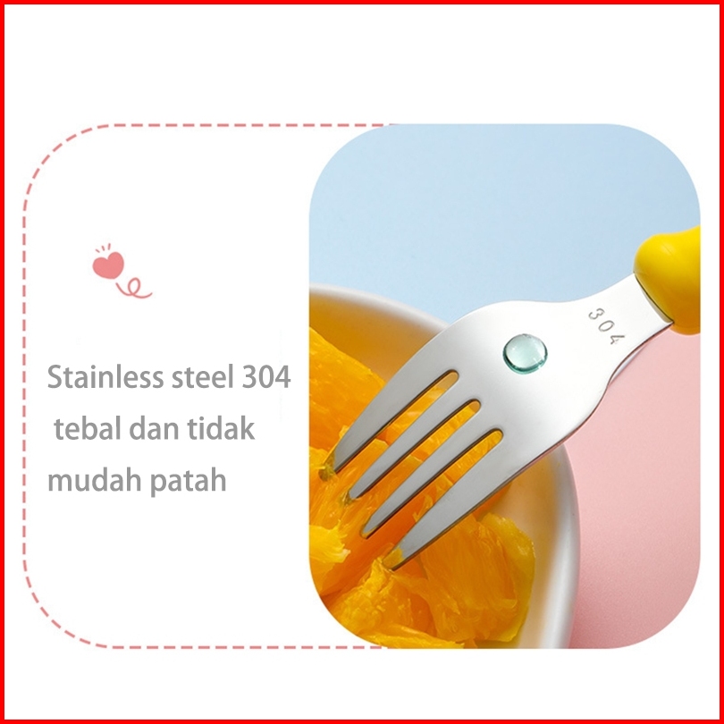 Hippoland 3 In 1 Set Alat Makan Kartun Anak Sumpit Pelatihan Bayi Stainless Steel Sendok Garpu Set Peralatan Makan Pelen