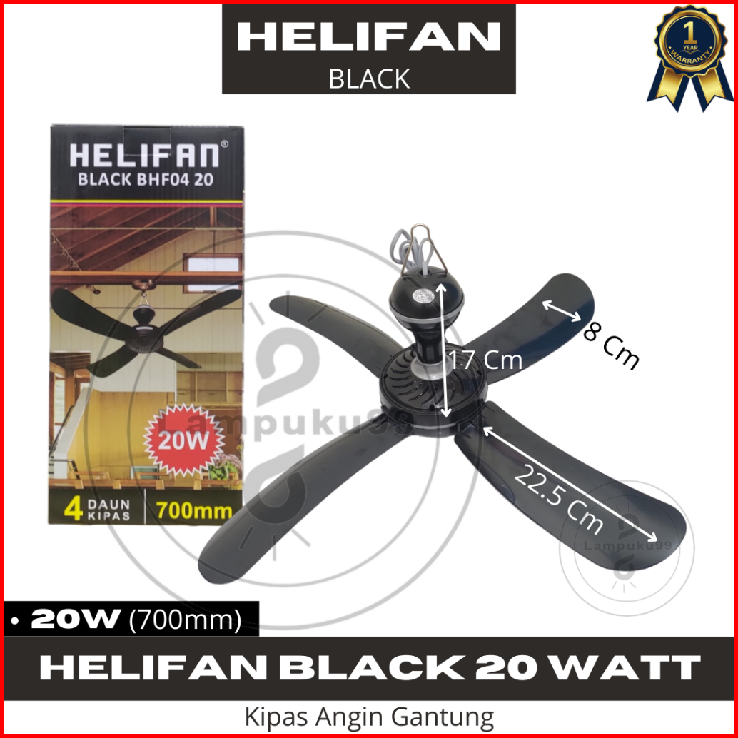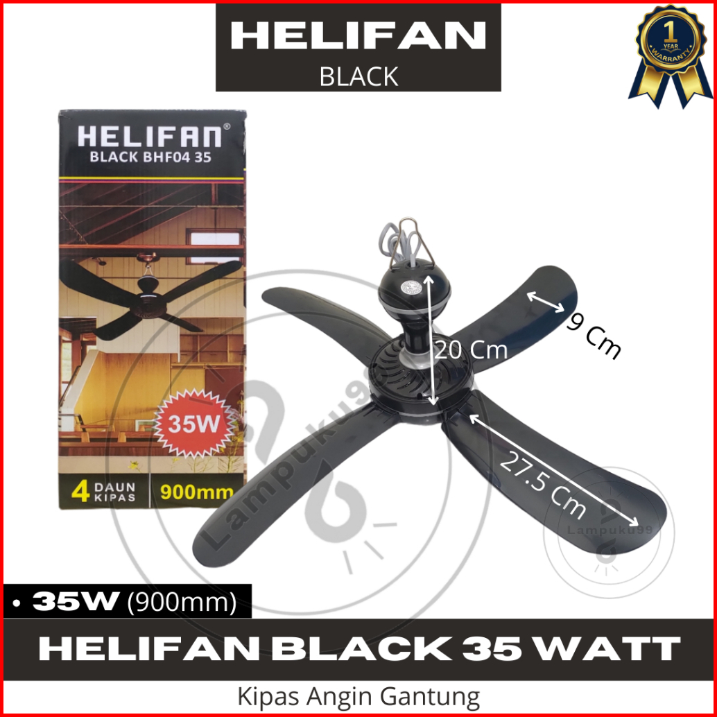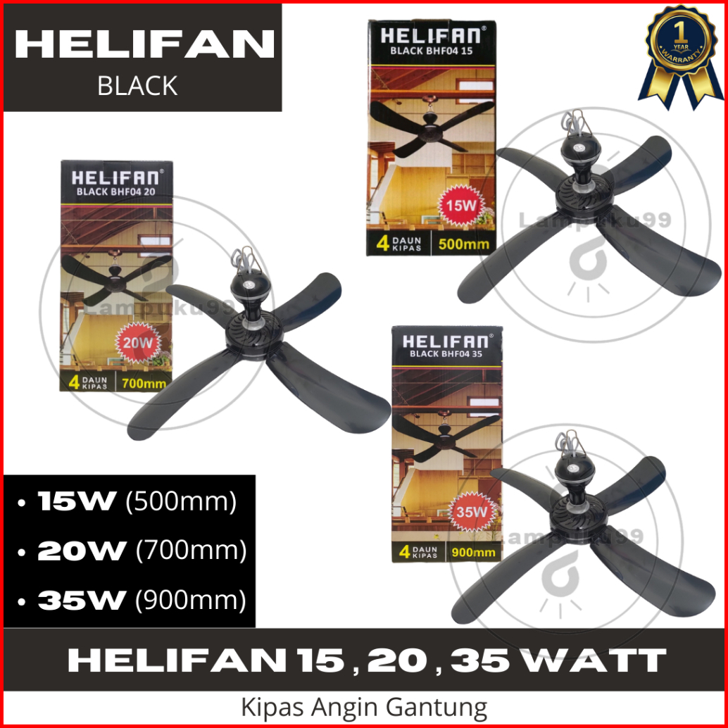 Helifan Hitam Black Kipas Angin Gantung 4 Baling 15 20 35 Watt