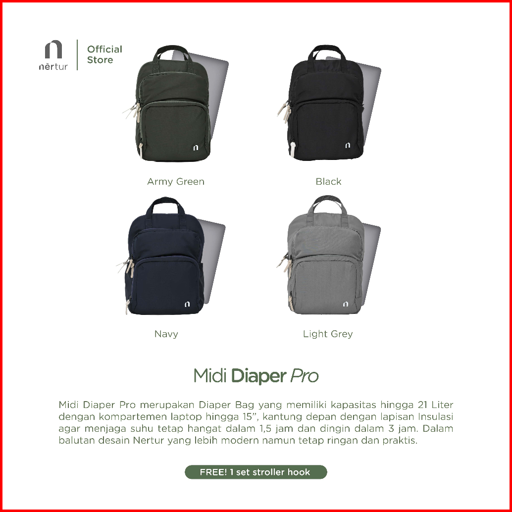 Nertur Tas Perlengkapan Bayi Diaper Bag Midi Diaper Pro 21l Fit Laptop 15