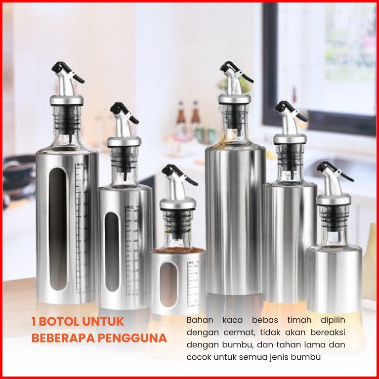 Botol Minyak Goreng Tempat Kecap Syrup Olive Oil Kaca Stainless Steel Murah Bagus Milenial