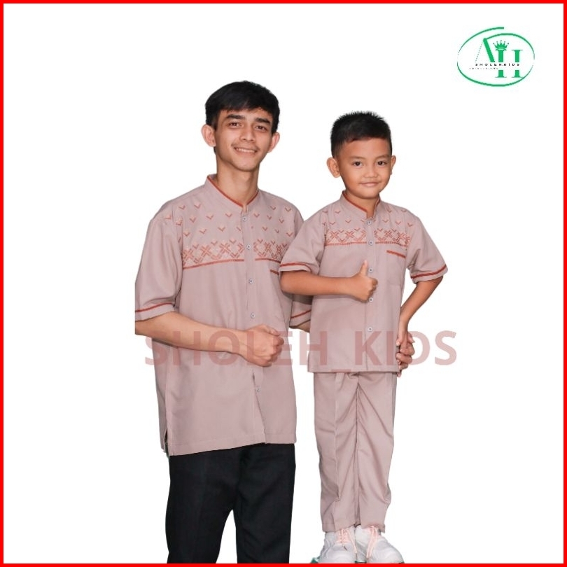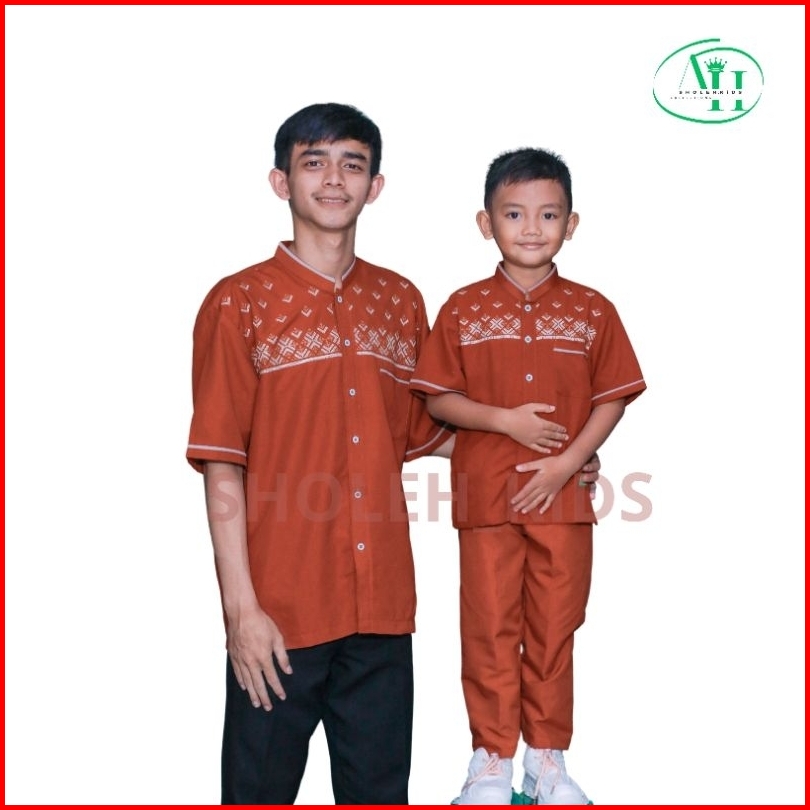 Baju Koko Couple Ayah Dan Anak Laki Laki Motif Bordir