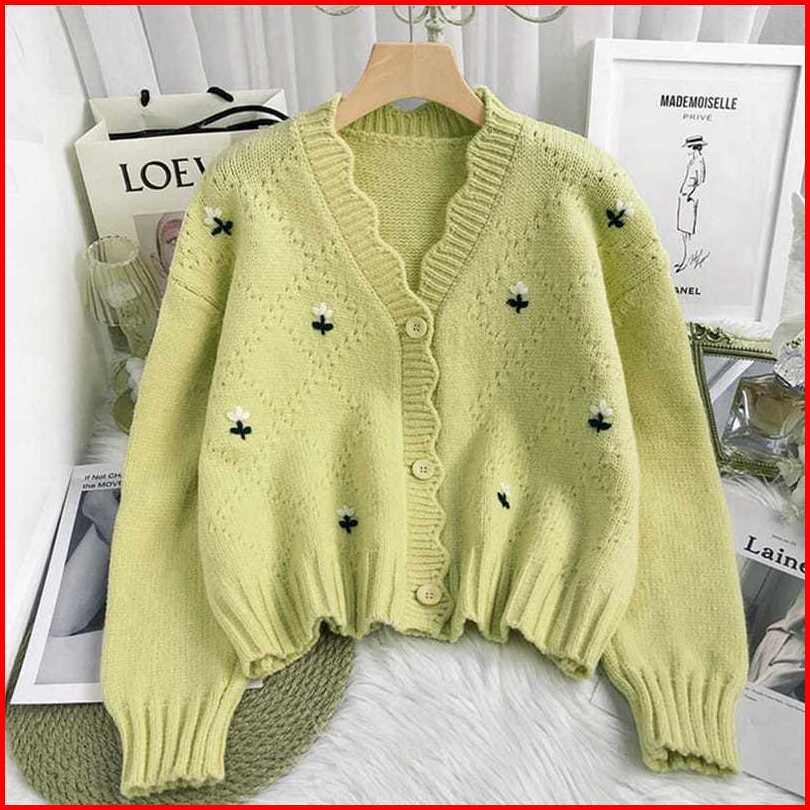 Miki - Cardigan Crop Flower Premium Wanita Atasan Rajut Sweater Knitwear Outer Korean Knit Tops