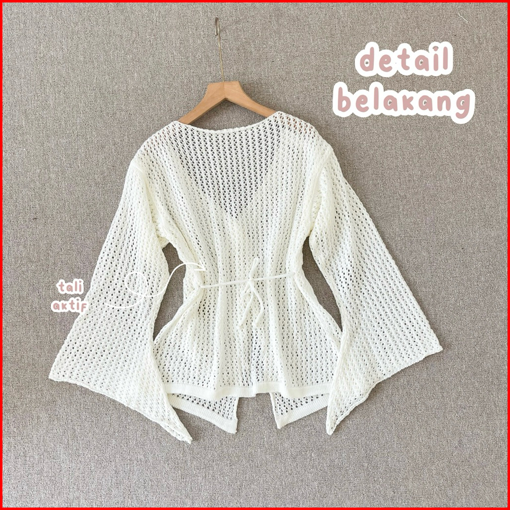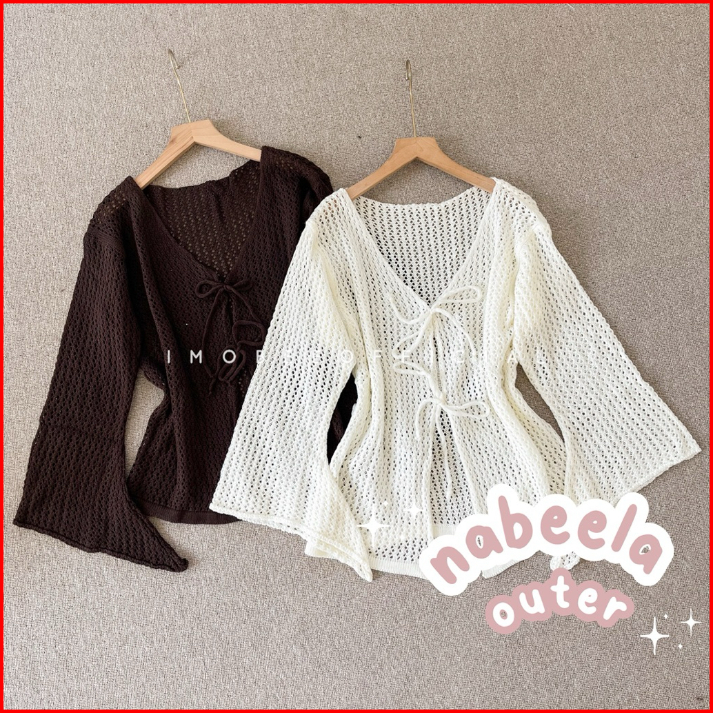 Nabeela Net Outer Cardigan Long Outer Knit Rajut Hole Pantai Wanita Fit Body